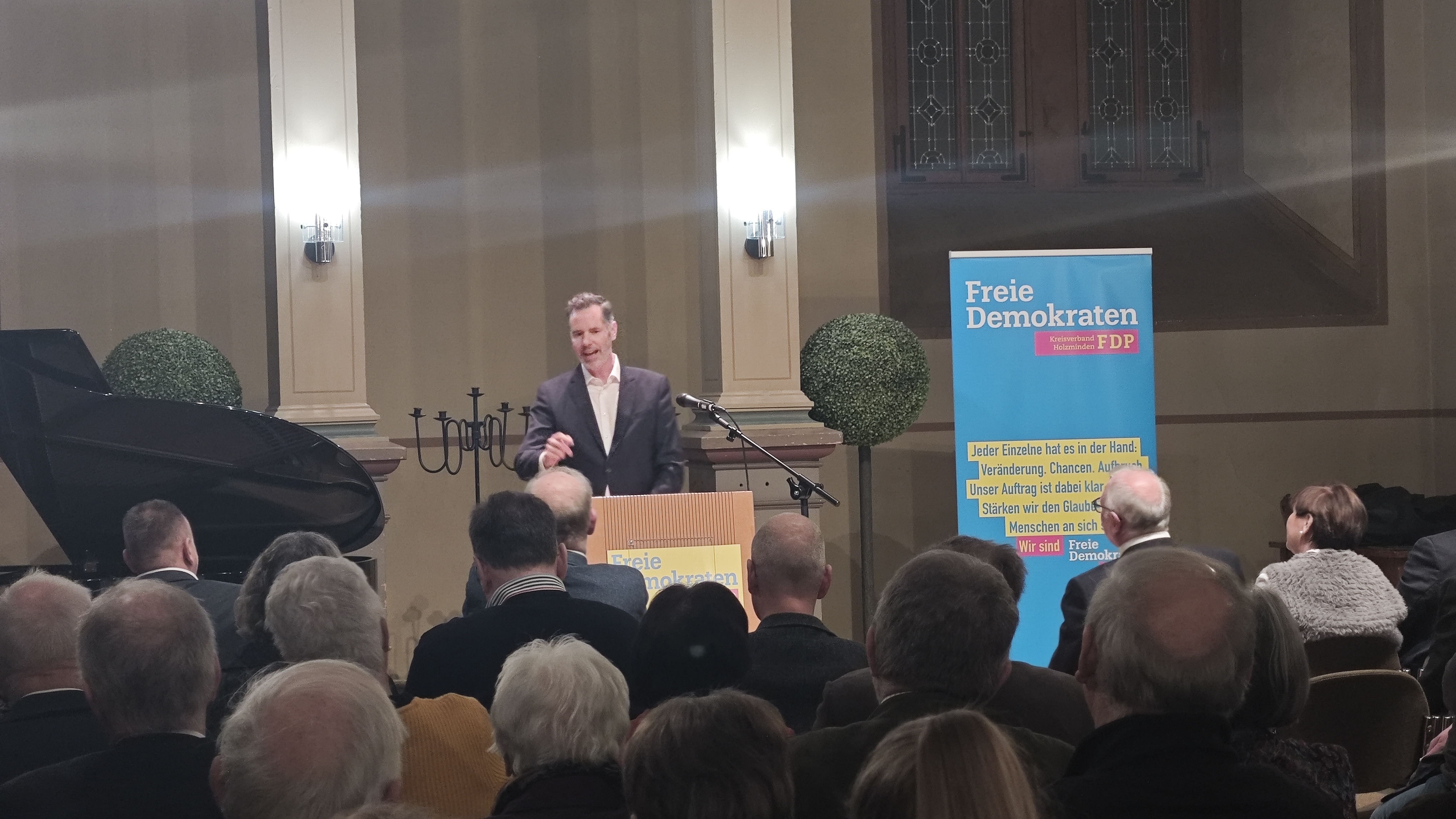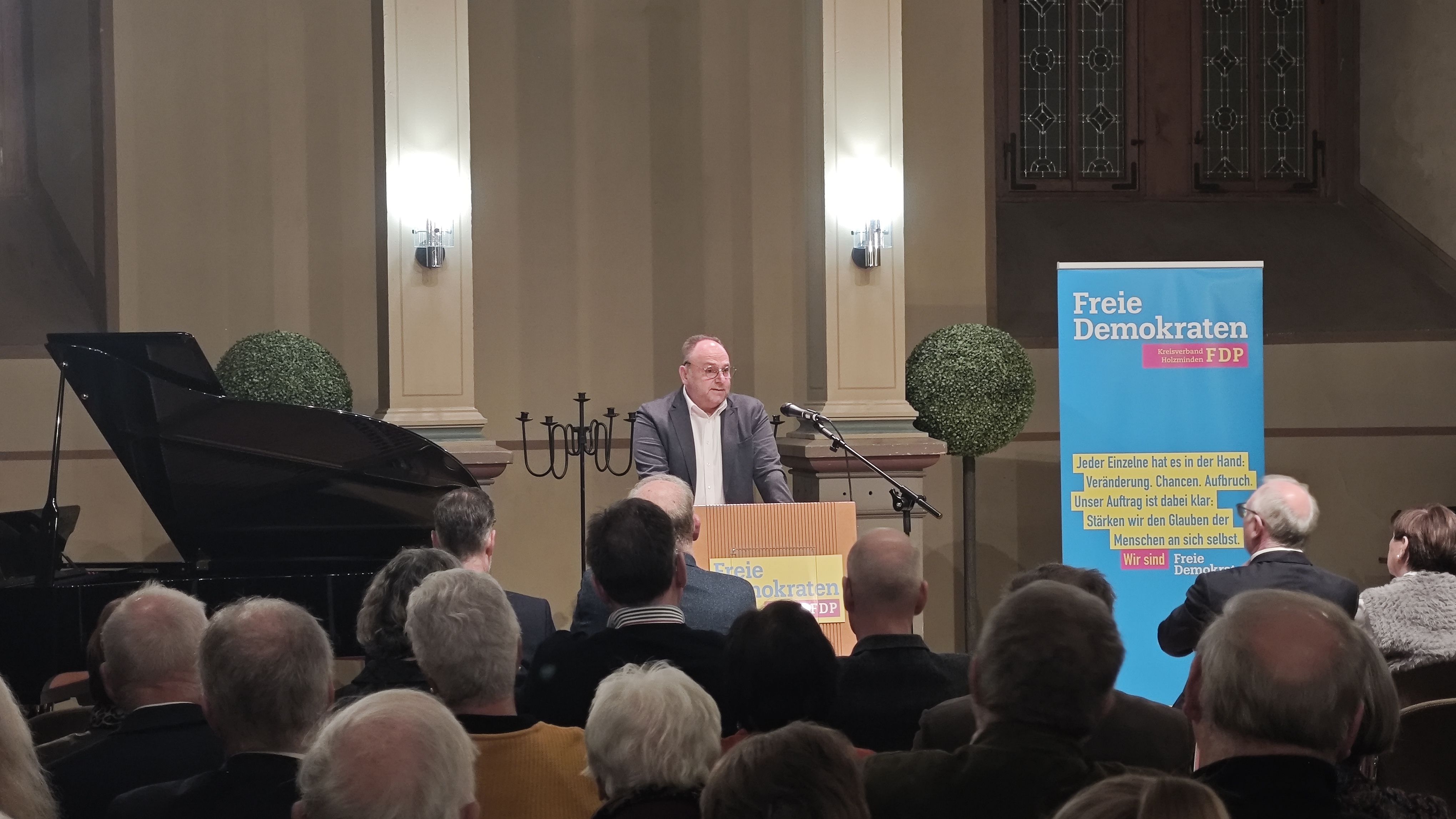 Im Mittelpunkt des Abends stand der Auftritt von Christian Dürr, der in seiner Rede grundsätzliche politische Weichenstellungen ansprach. Er dankte für den herzlichen Empfang und stellte die Frage, warum trotz hoher Steuereinnahmen vielerorts Geld fehle. Bis 2030 sollen Investitionen von rund 850 Milliarden Euro für Deutschland bereitgestellt werden, um das Land voranzubringen. Dürr warnte: Wenn Politiker erklärten, man müsse investieren, bedeute dies letztlich, dass Bürgerinnen und Bürger dafür aufkommen müssten. Der Staat dürfe jedoch nicht vorgeben, in welche Technologien investiert werde.