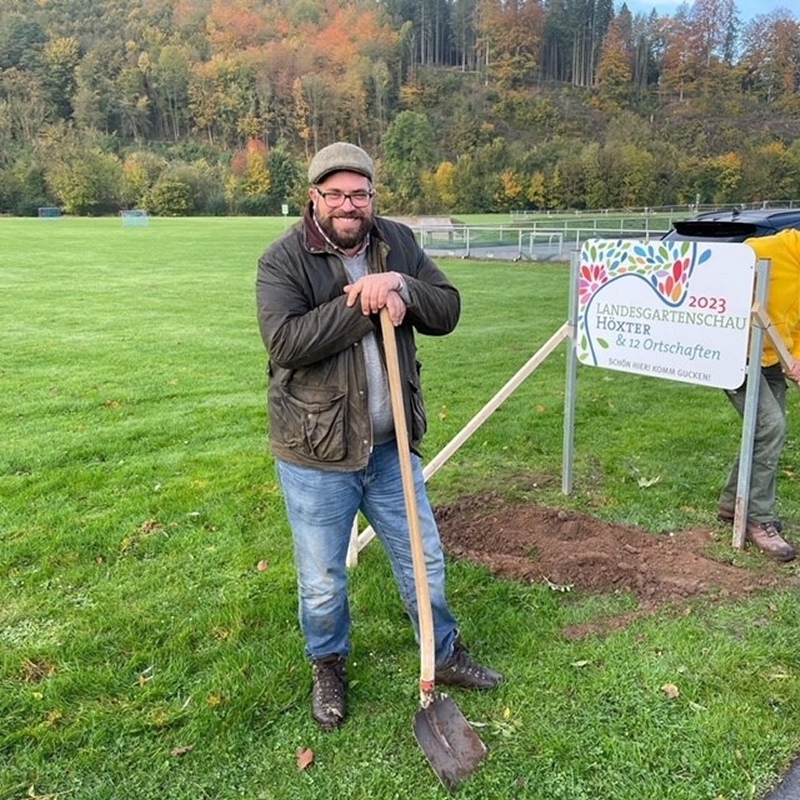 Höxter (TKu). Schippen, ausheben und Schilder setzen: Die Werbemaschinerie für die Landesgartenschau 2023 in Höxter nimmt mächtig an Fahrt auf, dank vieler fleißiger Helferinnen und Helfer. Großes Lob zollte der Höxteraner Ortsausschussvorsitzende Ralf Dohmann (BfH) den zahlreichen Helfern, die weitere Hinweisschilder auf die Landesgartenschau Höxter im Kernstadtgebiet aufgestellt haben, die nicht zu übersehen sind. Mit angepackt haben am vergangenen Samstag etwa 20 Höxteranerinnen und Höxteraner vom Ortsausschuss Höxter-Kernstadt und aus den Vereinen wie der Schützengilde und dem Heimat- und Verkehrsverein. „Die Ortschaften hatten da ja schon vorgelegt und nun geht es auch in der Kernstadt voran mit der Schilder-Werbung für die Gartenschau“, sagte der Höxteraner Ortsausschussvorsitzende Ralf Dohmann während der Arbeiten auf dem Besucherparkplatz am Weltkulturerbe Corvey. Die Begrüßungsschilder zur Landesgartenschau mit dem Slogan "Schön hier! Komm gucken!" wurden in Höxter am Floßplatz, an der Freizeitanlage Höxter-Godelheim in der Nähe des Wohnmobilstellplatzes, am Weserradweg in Richtung Innenstadt und an der Welterbestätte Corvey aufgestellt. Zwei Schilder stellte der Förderverein der Landesgartenschau für jede Höxteraner Ortschaft zur Verfügung. In der Kernstadt konnten wiederum zwei Schilder durch Sponsoren wie der Werbegemeinschaft Höxter oder dem Heimat- und Verkehrsverein angeschafft werden. Ralf Dohmann geht davon aus, dass die Gartenschau positive Impulse nach Höxter bringen werde, wenn die Ostwestfalen für das Projekt erst einmal Feuer gefangen hätten. „Wir Ostwestfalen sind ja oftmals nicht so leicht für etwas zu begeistern, aber wenn wir dann Feuer gefangen haben, mischen wir umso engagierter mit“, so Dohmann gegenüber Höxter-News.