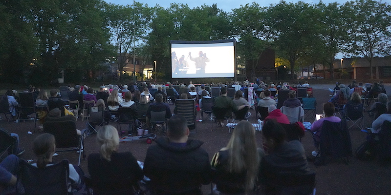 Die Leinwand ist aufblasbar und dadurch beeindruckend dünn für ihre Größe. „Da die Fläche so groß ist und dementsprechend anfällig für Wind. Haben wir sie mit insgesamt acht Tonnen Gewicht gesichert“, erklärt die Theaterleiterin. Dabei wurde das Kino von der Firma Müller-Heine und dem TO-Service unterstützt. Der mobile Projektor wurde sicher in einem Anhänger der Fahrschule Diabolo untergebracht. „Wir freuen uns sehr über die zuverlässige Unterstützung“, ergänzt sie.