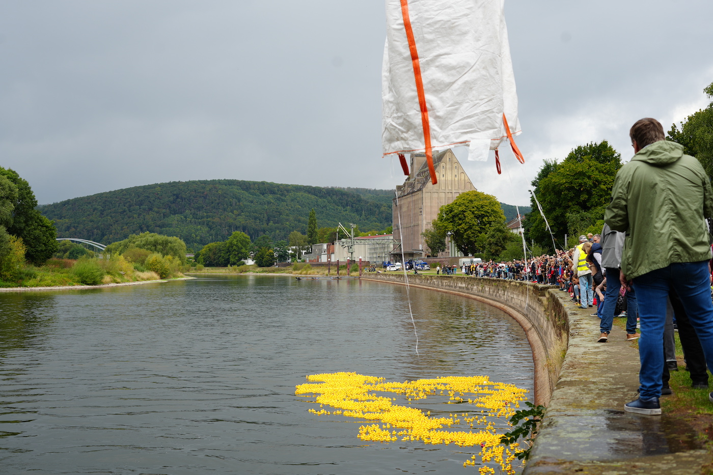 Anschließend schickten die kleinsten Bürger von Holzminden 120 Enten ins Rennen. Hinter jeder Ente steckte ein Gewinn. Die Ente des kleinen Raffaels schwamm am schnellsten die Weser hinab.