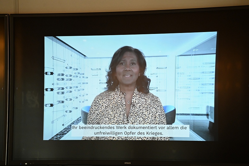 Warum begeben sich Fotografinnen und Fotografen ebenso wie Kriegsberichterstatter:innen in Krisengebiete, fragte sich Antonia Rados während ihrer Ansprache. Eine Antwort darauf könne sie jedoch nicht eindeutig nennen, sie betonte aber, wie bedeutend diese Arbeit an „vorderster Front“ für die Welt sei, um der Propaganda der Kriegsparteien etwas entgegen zu setzen. Kriegsberichterstatter und Fotografen in Konfliktsituationen seien „die Störenfriede der Propaganda“, weil sie neutral berichteten. Sie könnten die Welt zwar nicht ändern, aber für Zweifel an den Unwahrheiten der Propagandisten sorgen. Der Job, den sie selbst Jahrzehntelang für die Medien (darunter RTL) ausgeübt hat, sei riskant und anstrengend, aber das Risiko wert. Ein Bild eines Menschen aus Afghanistan von Anja Niedringhaus hat es Antonia Rados bei der anschließenden Besichtigung des Forums Anja Niedringhaus besonders angetan. Das Lachen dieses Menschen hat sie in ihren Bann gezogen - fasziniert von den Gesichtsausdrücken und von der Überzeugungskraft von Anja Niedringhaus, wie sie diese Menschen dazu bewegt hat, ein Foto von Ihnen machen zu dürfen.