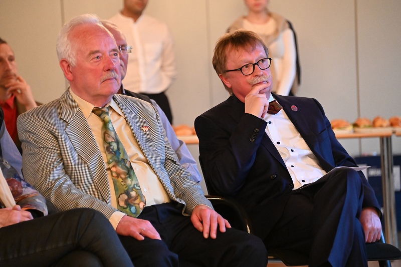 Eine Ehrung für ihre 50-jährige Mitgliedschaft im Heimat- und Verkehrsverein sprach der Vereinsvorsitzende Drews den Mitgliedern Wilfried Henze und Johannes Graf von Droste zu Vischering aus sowie Rudolf Lohmann in Abwesenheit, weil dieser aus gesundheitlichen Gründen bei den Feierlichkeiten nicht anwesend sein konnte. Die persönliche Ehrung werde aber nachgeholt, so Norbert Drews. Als Anerkennung für ihre langjährige Mitgliedschaft überreichte Drews dem ehemaligen Stadtheimatpfleger Wilfried Henze und dem ehemaligen HVV Vorsitzenden (1974 bis 1978) Johannes Graf von Droste zu Vischering ebenfalls die Corveyer Jubiläumsmünze „1200 Jahre Corvey“. Während der kleinen Feierstunde kamen beide Jubilare auch zu Wort. Ihre Heimat wäre nicht nur auf den Ort begrenzt, auch den Heimat- und Verkehrsverein selbst bezeichneten sie als ihre Heimat.