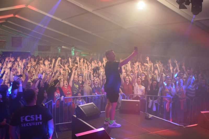 Nach einer kurzen Pause ging es mit dem nächsten Star vom Ballermann weiter. Julian Sommer betrat die Bühne und sang seinen Song „Peter Pan“, den er sonst zusammen mit Mia Julia perfomt. Natürlich durfte sein Hit „Dicht im Flieger“, der die Besucher zum Tanzen brachte, auch nicht fehlen. „Ich habe schon in vielen Zelten gespielt, aber ihr seid echt krass“, zeigte sich auch Sommer begeistert vom Publikum. Sommer präsentierte mit „Arielle“ seinen neuen Song, der demnächst zusammen mit Lorenz Büffel rauskommen wird. Völlige Eskalation war auch beim Volks DJ Felix Harrer angesagt. „Ich habe Gänsehaut“, schrie er dem Publikum zu, das zusammen mit ihm das versprochene, unvergessliche Partyerlebnis hatte.