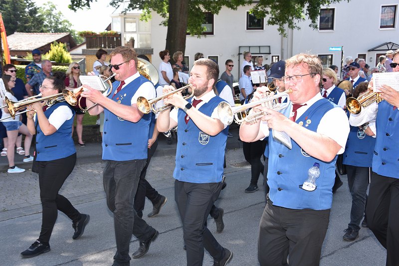 Lüchtringen (TKu). Wenn Feuerwehr und Schützen gemeinsam feiern: Blau und Grün waren die dominierenden Farben im Weserdorf Lüchtringen am vergangenen Wochenende, denn da feierte die Schützenbruderschaft St. Johannes e.V. und die Freiwillige Feuerwehr gemeinsam ein gemeinsames Jubiläumsfest. 450 Jahre Schützenbruderschaft St. Johannes e.V. und 115 Jahre Freiwillige Feuerwehr Lüchtringen wurde an vier Tagen ausgiebig und täglich bis in die Nacht hinein gefeiert. Vogelschießen, Feuertaufe, Festumzüge und jeden Tag eine große Sause bis tief in die Nacht mit der Partyband Comeback, DJ Francis, den Frankenkrachern und natürlich der Blaskapelle Lüchtringen. Erstmalig erlebte Lüchtringen auch ein Vogelschießen als Wettbewerb, bei dem Feuerwehr und die Schützen den Vogel gemeinsam abgeschossen haben, mit musikalischer Begleitung durch den Spielmannszug und die Blaskapelle Lüchtringen. Dabei ermittelt wurden der Jubiläumskönig der ehemaligen Majestäten, der Jubiläumskönig der Freiwilligen Feuerwehr und der Bürgerkönig bzw. die Bürgerkönigin. Um den Wettbewerb so durchführen zu können, musste ein Vogelstand extra aus dem Ruhrgebiet an die Weser geholt werden. Weil der Holzvogel beim Ausschießen des Bürgerkönigs aber lange nicht fallen wollte, war ein zweiter Durchgang notwendig.