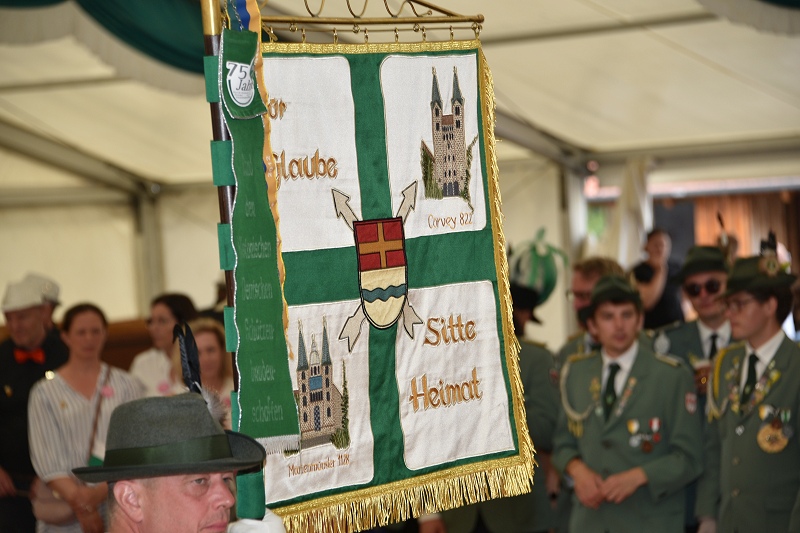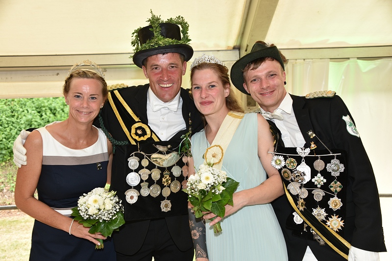 Unglaublich, was die Königinnen und die Damen des neuen Hofstaates nach dem Königsschießen wieder mal auf die Beine stellen mussten: innerhalb von etwa zwei Stunden musste die passende Garderobe nebst Frisur stehen, denn mehr Zeit blieb ihnen nicht mehr, bis der Umzug mit musikalischer Begleitung des Weserberglandorchesters und des Spielmannszuges Bödexen zum Abholen vor der Tür stand. Dann wurde auf der Straße getanzt, gesungen und gefeiert. Nach einem kleinen Umzug durch Bödexen ist die offizielle Proklamation anschließend im Festzelt „Am Nassen Kamp“ vollzogen worden. Diese wurde durch Pastor Tobias Spittmann vorgenommen. Anschließend fuhren die Königspaare mit dem Königstanz fort. Mit Musik und Tanz im Festzelt feierte Bödexen anschließend noch viele Stunden ihre neuen Regenten, bis das besondere Festwochenende der St. Sebastianus Schützenbruderschaft Bödexen bei schönstem Sommerwetter ausklang.