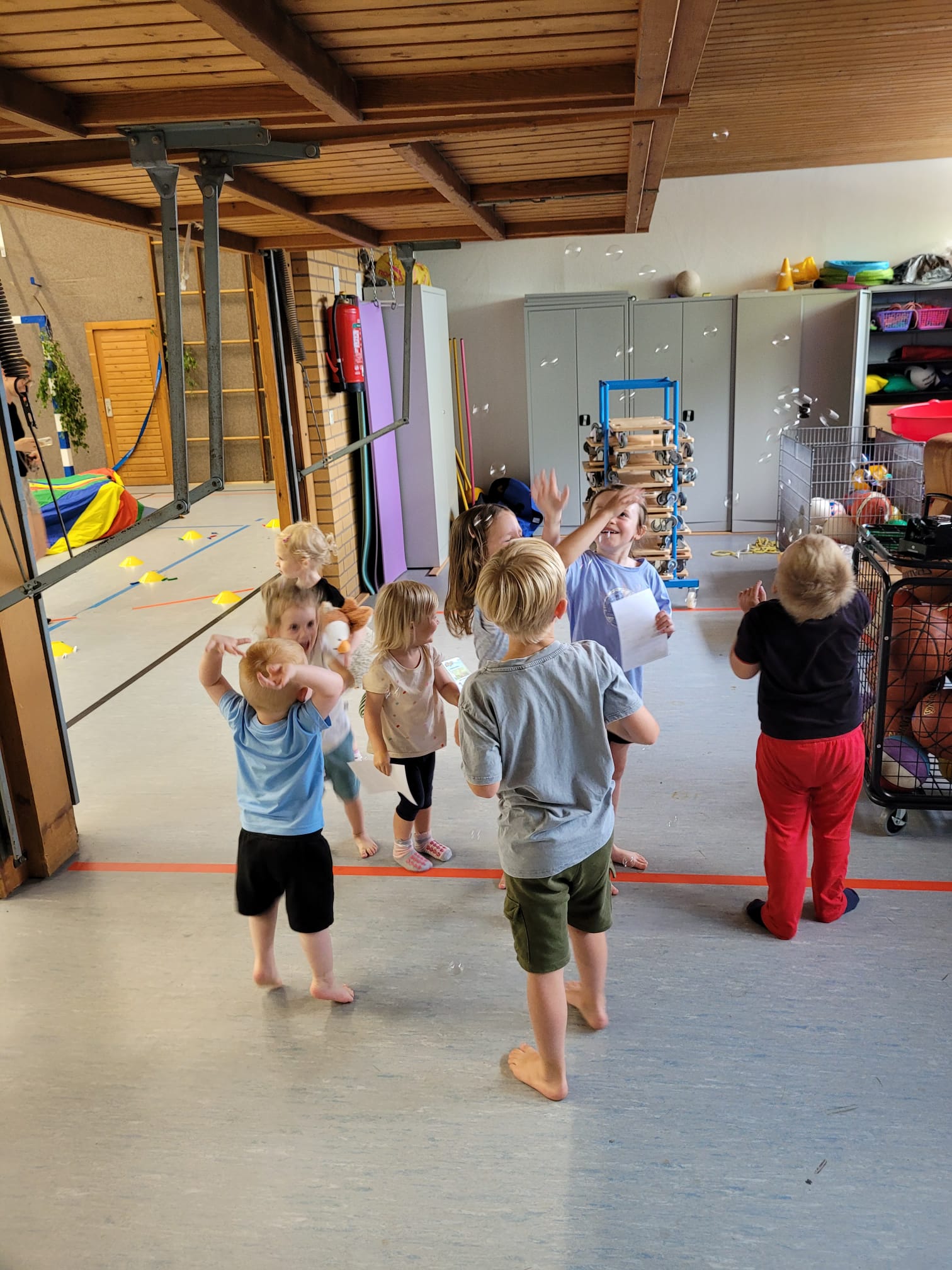 Kirchbrake (red). In der Eltern- und Kind-Turngruppe des TSV Kirchbrak hatte Frau Eule Geburtstag! Der frisch lizenzierte Übungsleiter Maik Weper hatte dafür mit einigen HelferInnen in der Turnhalle einen liebevoll gestalteten Bewegungsparcours unter Patenschaft des Landessportbundes aufgebaut. 18 aufgeregte Kinder waren mit ihren Eltern dabei, den Hasen Hoppel und den Igel Bürste auf dem Weg durch den Wald zur Eule zu begleiten, denn die hatte Geburtstag! Sechs Übungen waren in die Handlung dieser kleinen Bewegungsgeschichte eingebettet. Mit diesen Bewegungsvorschlägen wurden den jungen Sporttreibenden Bewegungsgelegenheiten und -erlebnisse angeboten, die dem natürlichen Bewegungs- und Entdeckungsdrang von Kindern entsprechen.