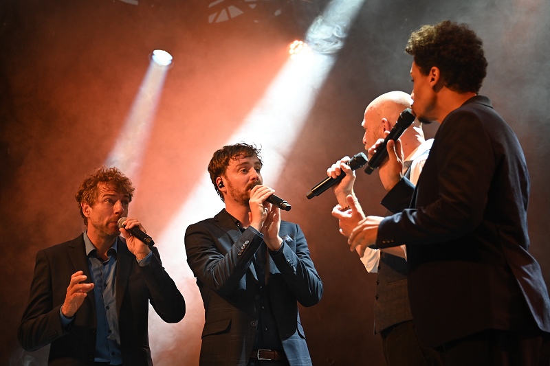 Nach einer kurzen Ansprache machten sie aber auch schon die Bühne frei für die stimmgewaltige A-cappella-Band „Slixs“. Dieser Name stand an diesem Abend für eine kraftvolle und waghalsige Mischung aus Jazz, Pop und Funk, Klassik und Weltmusik. Die Bandmitglieder selbst bezeichnen sich als „Vocal Bastards“. Ende der 1990er Jahre noch unter dem Namen „Stouxingers“ gegründet, sind sie seit 2012 als „Slixs“ unterwegs, und das in ganz Europa und halb Asien. Und Weltklasse war auch ihre Musik, welche das Publikum in Höxter in ihren Bann zog. Eigentlich gehören der Band fünf Sänger und eine Sängerin an. „Slixs“, das sind Michael Eimann, Gregorio D’Clouet Hernández, Karsten Müller, Thomas Piontek und Konrad Zeiner sowie Sängerin Katharina Debus.