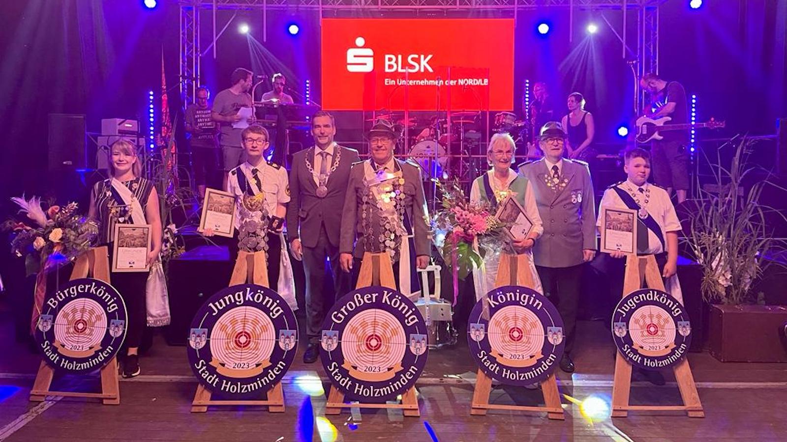 Niklas Salzmann verteidigte direkt seinen Titelanspruch und wurde vom Jugendkönig 2019 zum Jungkönig 2023. Die vorherige Königskette konnte also direkt wieder angelegt werden. Sowohl Emir Morawiec als auch Niklas Salzmann wurden durch das typische Vereinstragen auf den Schultern ihrer Vereinskollegen zur die Bühne gebracht. Die Spannung, wer der Große König der Stadt Holzminden wird, wurde bis zur letzten Sekunde herausgezögert. Insgesamt hatten 31 Holzmindener Schützen auf den Großen König geschossen und dies aus allen Mitgliedsvereinen. Über einen Sieg jubeln konnte letztendlich der Schatzmeister Thorsten Fieker vom Sportclub Eintracht. Völlig überrascht und überrumpelt betrat der neue große König die Bühne und rief dreifach aus dem Bauch heraus zum Jubel auf. Die Schützenbrüder und -schwestern stimmten alle herzensgut mit ein.