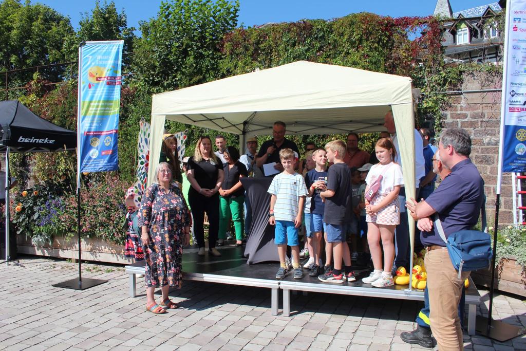 Die 200 Enten für das Kinderrennen im Design von der Landesgartenschau-Fee Holly wurden gestellt vom Förderverein der Landesgartenschau und wurden an Kinder bis 12 vergeben. Die zehn Preise für die schnellsten Holly-Enten konnten alle vergeben werden und die Figuren durften von den Kindern schließlich mit nach Hause genommen werden.