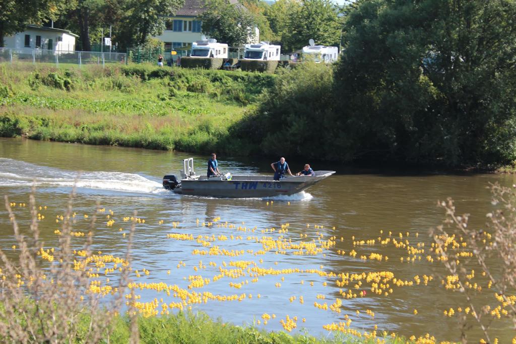 Höxter (jmb). Es ist eine Premiere, die am 9.9.2023 gegen Mittag am Weserkai in Höxter stattfindet. Zum ersten Mal seit sechs Jahren, findet das nun siebte Holzmindener Entenrennen nicht wie gewohnt in Holzminden statt, sondern im benachbarten Höxter. Anlass dafür ist die Landesgartenschau in Corvey. Die hohe Frequenz der Landesgartenschau soll genutzt werden, um Gutes zu tun. Jedes Jahr werden im Vorfeld für fünf Euro Rennlizenzen verkauft, mit dem Käufer symbolisch eine Plastikente an den Rennstart schicken. Es locken Sachpreise von Unternehmen und Förderern aus dem Weserbergland im Gesamtwert von 5000 Euro. Das Entenrennen zielt darauf ab, den Ticketerlös zu spenden. Dadurch, dass der Ticketverkauf nun auch im Landkreis Höxter beworben wurde und Schulen und Vereine selbst vom Verkauf der Rennlizenzen profitieren, ist in diesem Jahr eine Summe von 30.000 Euro zusammengekommen, die an ausgewählte Frauenhäuser aus den beiden Landkreisen, an die Tafel, den Kinderhospiz und Jugendarbeit in Höxter und Holzminden gespendet wird.