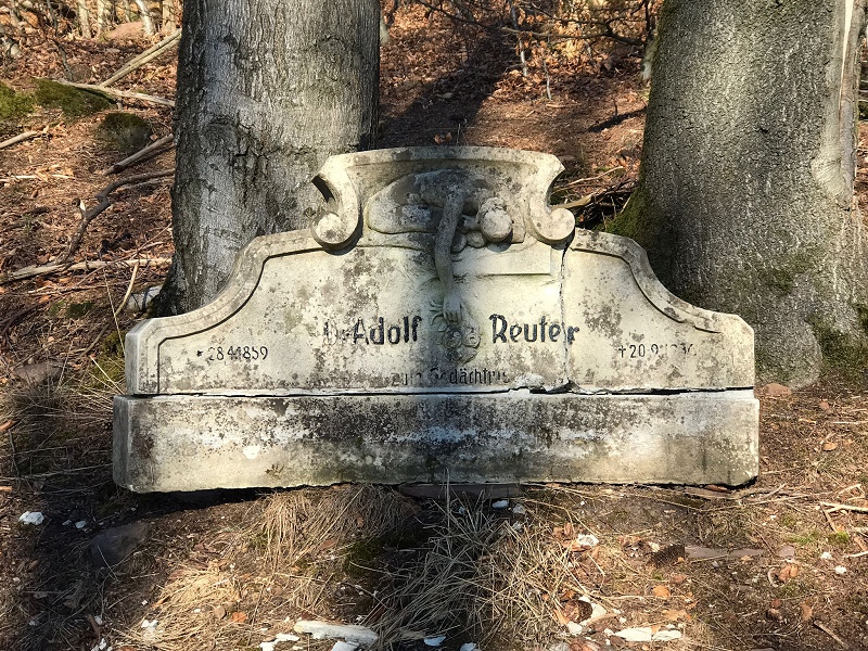 Dr. Adolf Reuter wurde 1859 in Kirchdorf bei Rostock geboren. Sein Onkel war der bekannte Dichter Fritz Reuter aus Mecklenburg. Im Jahre 1885 kam er nach Höxter, wo er eine Tätigkeit als Gymnasiallehrer am Städt. König-Wilhelm Gymnasium aufnahm. Nach seiner, aus gesundheitlichen Gründen frühzeitigen Pensionierung, unterrichtete er noch stundenweise an der Höheren-Töchterschule in Höxter. Dr. Reuter wohnte bei seinem Neffen dem Rechtsanwalt und langjährigem Bürgermeister von Höxter, Wilhelm Hattenhauer, in der Corveyer Allee. Er starb am 20.9.1936. Seine Urne wurde auf der Familiengruft von Hattenhauers beigesetzt, wo sie sich noch heute befindet. Adolf Reuter hat sich in Höxter und dem Weserbergland als Heimatfreund durch seine erfolgreiche schriftstellerische Arbeit verdient gemacht. In über 50 Beiträgen berichtet er von der Schönheit des Weserberglandes, von Höxter, Corvey und der „Waldeinsamkeit“ die er so schätzte. Ihm zu Ehren benannte die Stadt Höxter eine Straße.