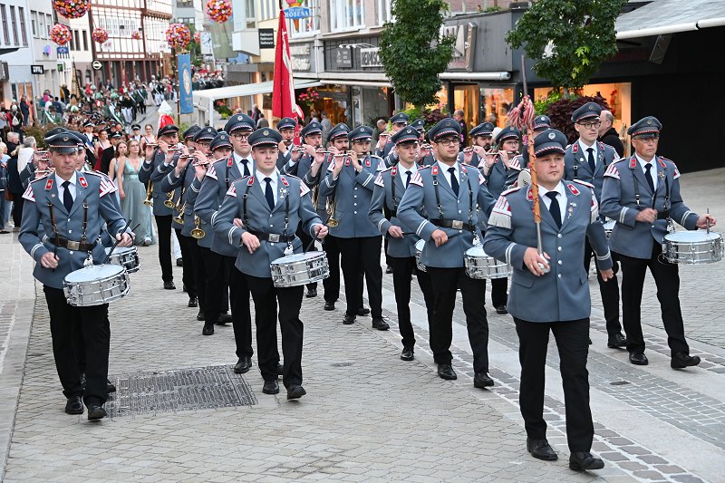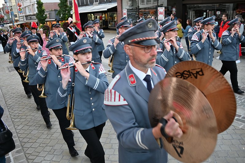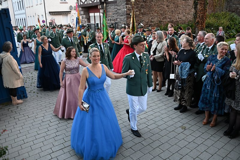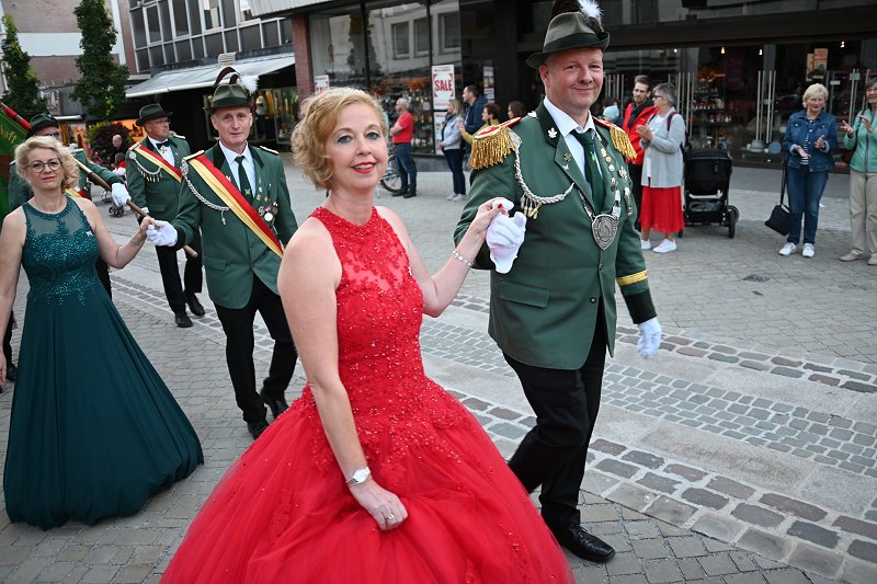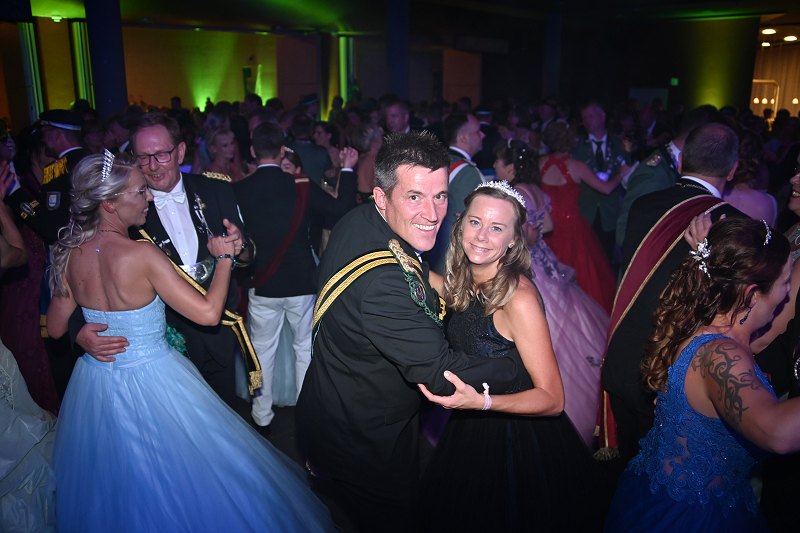 Es war ein imposantes und farbenprächtiges Bild, das sich ergab, als sich die Königspaare samt Hofstaaten und Schützen gemeinsam mit drei Musikkapellen die Marktstraße hinauf in Richtung Stadthalle im Festumzug auf den Weg machten. Dazu wurde auch das Landesgartenschaugelände in der Wallstraße überquert, weil Bürgermeister Daniel Hartmann im Umzug ganz vorne mit dabei war und den Schlüssel für das Tor in der Tasche hatte. Bewegt von dem prächtigen Anblick war neben Bürgermeister Daniel Hartmann und der Bezirksbundesmeister Stefan Rüther, der zusammen mit dem Bürgermeister in der aus „allen Nähten platzenden“ Stadthalle ein paar kurze Grußworte an die Gäste richtete. Bevor der Ball der Könige jedoch offiziell mit dem Königstanz startete, begrüßte Brudermeister Stefan Berens sämtliche geladenen Gäste, Obristen und Majestäten einzeln mit Namen. Nach dem Abendessen eröffneten dann die Bezirkskönige Wolfgang Schröder von der St. Sebastianus Schützenbruderschaft Bödexen und Markus Scholz von St. Kilian Lügde die Tanzfläche und somit auch den Königsball gemeinsam mit ihren Königinnen zum Lied „Moviestar“. Musikalisch unterhielt die Band „Unglaublich“ die Gäste an diesem Abend. „Wir freuen uns, dass wir dem Bezirkskönigspaar Wolfgang und Marion Schröder sowie unserem aktuellen Altkönigspaar Melanie und Rüdiger Überdick sowie dem Jungkönigspaar Bianca Heinemann und Frederik Rehker einen schönen Abschluss der Schützenfestsaison 2023 anbieten konnten“, erklärte Brudermeister Stefan Berens. „Royal“ gefeiert wurde der Ball anschließend noch bis tief in die Nacht hinein.