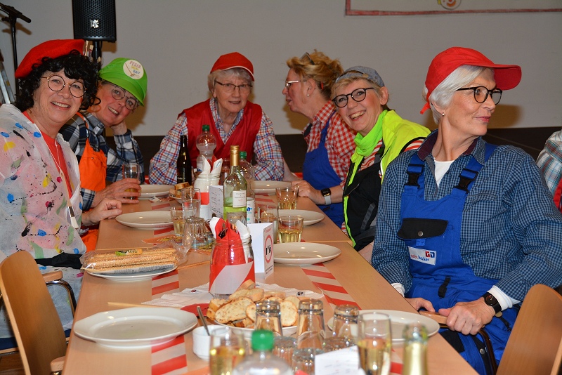 Höxter (TKu) Am vergangenen Freitag erlebte das ausverkaufte Pfarrheim in der Ostpreußenstraße in Höxter eine ungewöhnliche Verwandlung in eine närrische Großbaustelle bei der traditionellen Karnevalsfeier der Katholischen Frauengemeinschaft Höxter. Das ausverkaufte Pfarrheim wurde zur lebendigen Baustelle, als die Frauen unter dem Motto „Wir KFD-Frauen sind schlau, wir feiern Karneval auf dem Bau“ die Bühne eroberten. Der gesamte Saal war in ein festliches Ambiente aus Straßenschildern, Pylonen, Flatterband und anderen Arbeitsutensilien für die Baustelle gehüllt. Selbst ein eigens kreierter Baustellenschnaps fand seinen Weg ins handwerkliche Programm der Veranstaltung. Dabei standen nicht nur die Dekorationen im Fokus, sondern auch die närrische Unterhaltung auf der Bühne. Moderiert von Ulla Strohoff präsentierten die Teilnehmerinnen originelle Sketche, Büttenreden, musikalische Einlagen und Tänze – allesamt rund um das Thema Bau und Handwerk. Die Eröffnung erfolgte mit dem karnevalistischen Klassiker „YMCA“ von den „Village People“, doch von den sechs bekannten Akteuren wie Indianer, Polizist oder Soldat dieser Band erschien nur der Bauarbeiter auf der Bühne, das aber gleich in siebenfacher Ausführung.