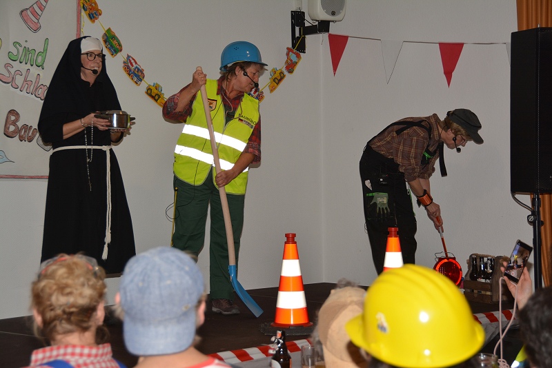 Höhepunkte der Veranstaltung waren unter anderem die handwerklichen Talente des Glaser, der auf amüsante Weise sein Können präsentierte, sowie das Werkzeugkasten-Lied, das mit einem ansteckenden Ohrwurm-Charakter die Zuschauer begeisterte. Die Huxaria-Hexen und Friends sorgten als Schweinchen verkleidet für gute Laune im Saal. Die Besucherinnen in Bauarbeiter- und Handwerkerinnen-Kostümen, als Zementsäcke verkleidet mit Maurerkellen auf dem Kopf, feierten unter anderem mit Musik und Tanz und auch mit einer Polonäse durch den Saal. Die kreativen Verkleidungen trugen dazu bei, dass die traditionelle Karnevalsveranstaltung zu einem unvergesslichen Erlebnis wurde. Insgesamt bewies die Katholische Frauengemeinschaft Höxter mit ihrem originellen Frauenkarneval, dass Baustellen nicht nur Männersache sind, sondern auch eine bunte und unterhaltsame Welt für Frauen bieten können.