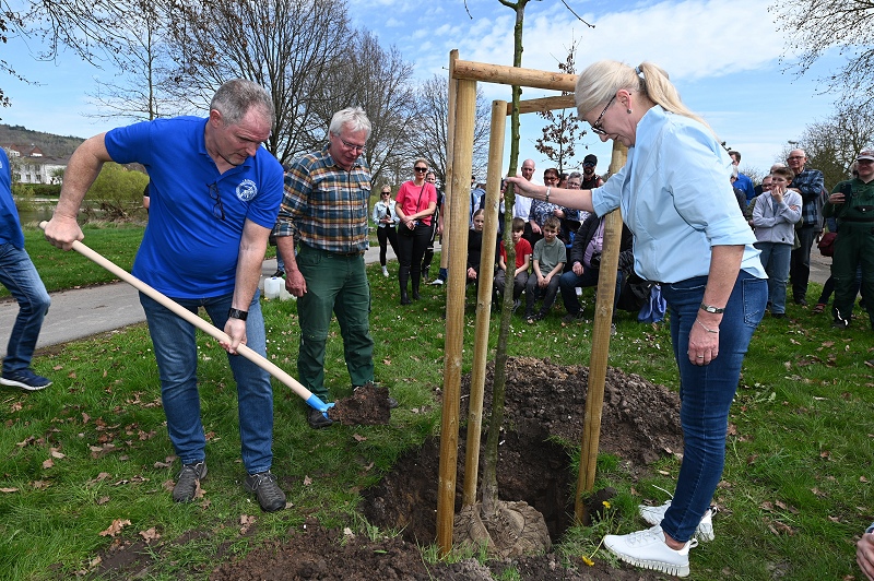 Höxter (TKu). Bei strahlendem Sonnenschein setzte das Königspaar der Schützengilde Höxter von 1595, Dieter und Martina Kuhlebrock, eine lange Tradition fort, indem sie eine neue „Königseiche“ auf dem Floßplatz nahe dem Weserufer pflanzten. Die sogenannte "Königsallee" erstrahlt nun dank einer prächtigen Stieleiche (Quercus Robur) in neuem Glanz. Seit 1986, als der damalige Schützenkönig Erhard Becker diese Tradition ins Leben rief, ist es Brauch, dass der amtierende Schützenkönig einen neuen Baum an der "Königsallee" am Floßplatz setzt. Diesem Brauch folgten soeben auch die amtierenden Regenten, begleitet von der ersten Kompanie und unter den Augen einiger ehemaliger Könige und Königinnen. Insgesamt schmücken nun bereits 18 majestätische Eichen die "Königsallee". Seit 2022 regieren Dieter Kuhlebrock und seine Frau Martina als Königspaar. Sie freuen sich bereits auf das bevorstehende Schützenfest im Juli, das einen Höhepunkt ihrer Regentschaft markiert.