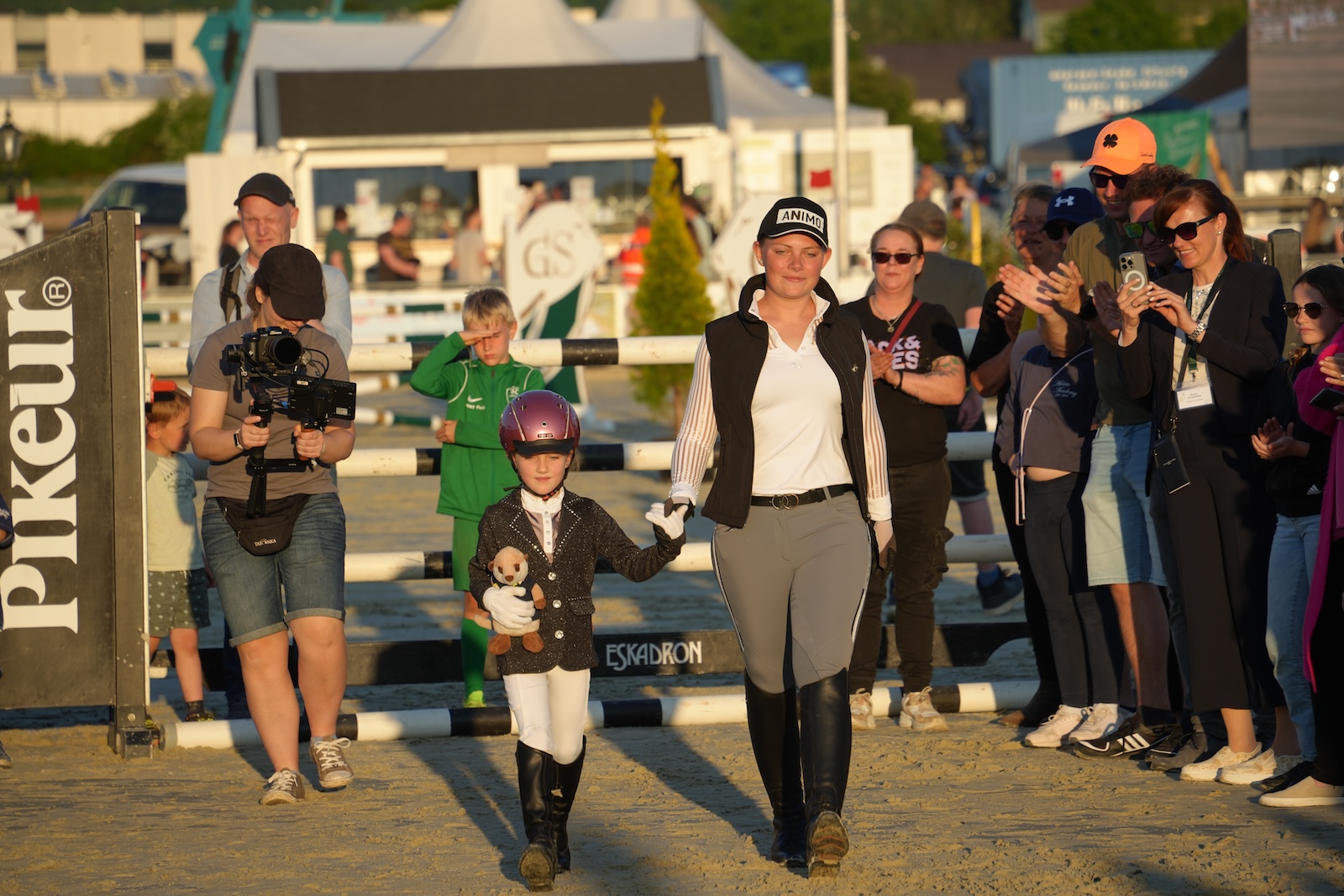 Nach der Siegerehrung der kleinen Tour, die die Reiterin Joan Wecke für sich entscheiden konnte, fand die Charity-Auktion statt. Im Rahmen einer Projektwoche hatten Schülerinnen und Schüler der Schule an der Weser eine Strandkorb-Sitzbank gebaut und den Reiterhof in Bevern besucht. Die Sitzbank stand zur Versteigerung. Der gesamte Erlös der Aktion war für die Harz-Weser-Werke bestimmt, die im kommenden Jahr die Charity-Aktion gestalten werden. Dieter Daehn vom gleichnamigen Garten- & Landschaftsbau-Unternehmen aus Holzminden ersteigerte den Strandkorb für 5000 Euro. Anschließend präsentierten die jüngsten Mitglieder des Reitvereins stolz die neuesten Trends des Sommers bei einer Modenschau auf dem Reitplatz.
