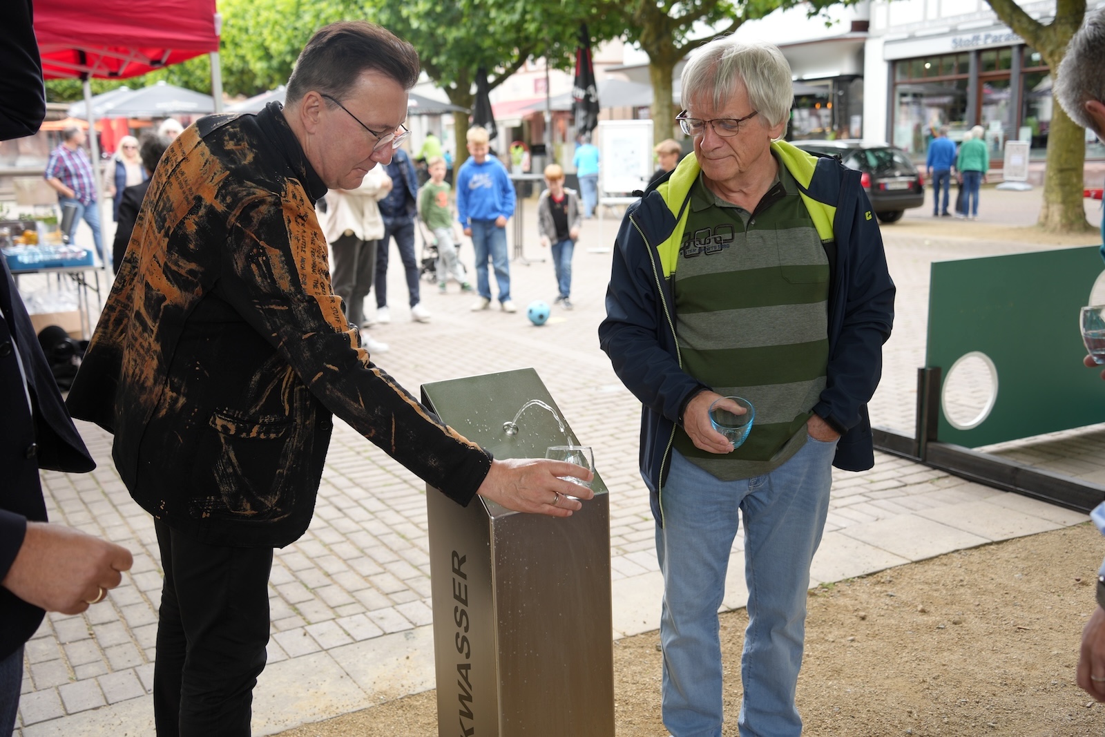 In Rekordzeit habe sich das Team-Trinkbrunnen bei den Stadtwerken gebildet, um das Projekt in die Hand zu nehmen und umzusetzen. Jan Christoph bedankte sich herzlich bei allen Beteiligten. Der Brunnen, der vom Gesundheitsamt abgenommen wurde, unterliegt Kontrollen, um sicherzustellen, dass das Wasser stets sauber. Die Technik des Brunnens garantiert dies, denn auch wenn er längere Zeit nicht benutzt wird, reinigt sich das Gerät alle 30 Minuten automatisch.