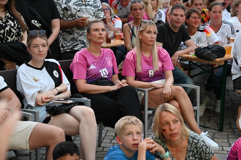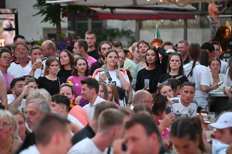 Höxter (TKu). Etwa 600 Fußballfans versammelten sich am Samstagabend auf dem Marktplatz in Höxter, um das spannende Fußballspiel des Achtelfinales zwischen Deutschland und Dänemark zu verfolgen. Bei sommerlichen Temperaturen und ausgelassener Stimmung genossen die Zuschauer das Public Viewing unter freiem Himmel, organisiert von der Agentur OWL-Booking aus dem Kreis Höxter. Die Veranstaltung, die von Polizei und Ordnungsamt begleitet wurde, zog Fans aller Altersgruppen an. Viele kamen mit Freunden und Familie, um gemeinsam das Spiel zu erleben. Es war ein wahrer EM-Krimi: Deutschland hat sich im EM-Achtelfinale mit 2:0 gegen Dänemark durchgesetzt und steht nun im Viertelfinale. Dänemarks vermeintliche Führung durch Joachim Andersen in der 48. Minute hatte nur kurz Bestand, der Verteidiger hatte, das belegten die Bilder kurze Zeit später, Zentimeter im Abseits gestanden. Trotz wetterbedingter 20-minütiger Unterbrechungen in Dortmund erzielte Kai Havertz in der 53. Minute per Elfmeter das 1:0, gefolgt von Jamal Musiala, der in der 68. Minute das 2:0 erzielte. Ein frühes Tor von Nico Schlotterbeck wurde wegen eines Fouls aberkannt. Manuel Neuer rettete kurz vor der Halbzeitpause das torlose Unentschieden. In der zweiten Halbzeit dominierte Deutschland erneut und Musiala sicherte den Sieg. Für die Besucherinnen und Besucher auf dem Marktplatz war es ein Wechselbad der Gefühle. Im Viertelfinale wartet nun der Sieger der Partie Spanien gegen Georgien.