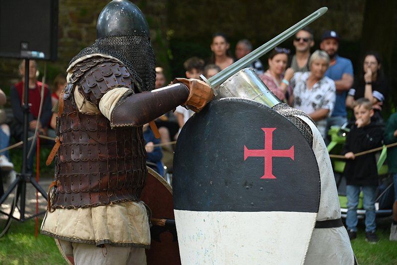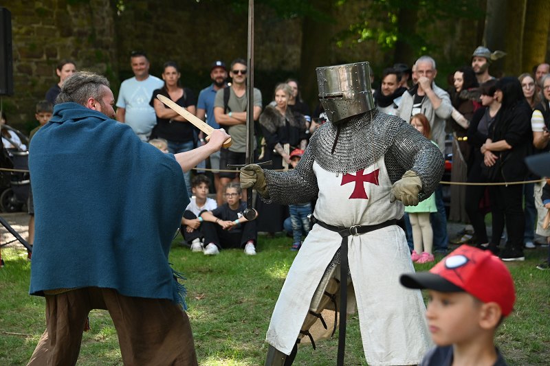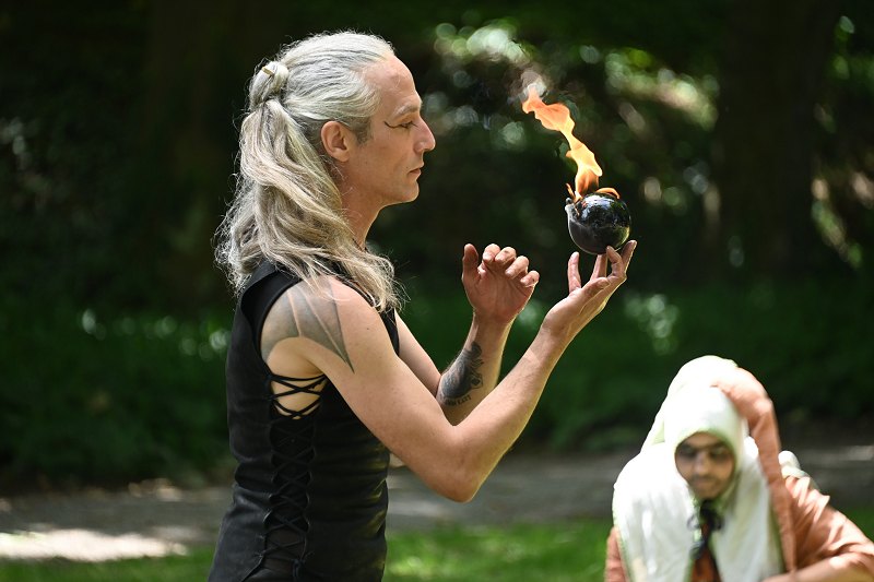 Ein Höhepunkt des Festes war das große Ritterturnier und das Feuerreiten der Showtruppe „Mandshur Tengri“, bei dem mutige Ritter zu Pferde gegeneinander antraten. Mit Respekt und Vertrauen bewegten sie die Pferde dazu, ihre natürlichen Instinkte zu überwinden und durch das Feuer zu reiten. Die Zuschauer feuerten auch die Ritter, die nicht auf dem Pferd, sondern per Pedes unterwegs waren, begeistert an, als sie in glänzenden Rüstungen ihre Lanzen kreuzten und spektakuläre Kämpfe darboten. Das Duo „Tandem Bliss“ war neben vielen anderen mittelalterlichen Gauklern ebenfalls ein Highlight. Es jonglierte mit Kegeln und Messern oder balancierte Glas- und brennende Feuerkugeln und sorgte für schmunzelnde Gesichter. Für alle Generationen wurde etwas geboten. Während die Kinder mit den Rittern um einen Schatz kämpfen durften, Pferde und Ziegen aus der Nähe betrachten und streicheln konnten, relaxten Fabelwesen im Jacuzzi oder tanzten auf dem Festplatz zur Musik von „Kupfergold“ mit ihrem Musikmix aus Fantasy-, Mittelalter- und wilden Saufhymnen. Weitere musikalische Highlights waren auch die Bands „Klanginferno“, „Seinerzeit“, „Duo Fjorden“ oder „Asa-tru“. Die weiteste Anreise, so scherzte der Fürstbischof Simon der Erste, alias Felix Morkes, habe Nis Jesse gehabt. Er wohne nur 20 Meter vom Festplatz entfernt, so Morkes.
