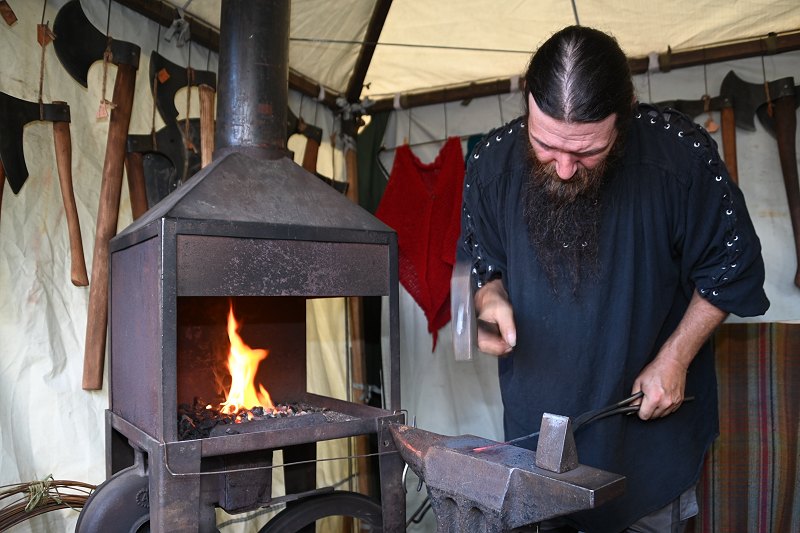 Nicht alles was ausgestellt oder unterwegs war, entsprach dem Mittelalter. So sorgte auch das Exponat einer original nachgebauten Guillotine für Aufsehen, die im 18. Jahrhundert entwickelt und von Ulrich Eminger aus Bad Karlshafen zu Schauzwecken bedient wurde. Es handele sich um einen 1:1 Nachbau. Gentiana Dushku und Sara Ruci aus Paderborn waren davon fasziniert und ließen sie sich von Eminger erklären. Wenn das Fallbeil oben eingerastet ist, reicht die Auslösung eines Hebels mit dem kleinen Finger und der Kopf ist ab. Neben den unterhaltsamen Shows und Vorführungen gab es auch zahlreiche Möglichkeiten, selbst aktiv zu werden. Kinder und Erwachsene konnten sich im Axtwerfen versuchen oder traditionelle Handwerke wie Schmieden und Seile anfertigen selbst ausprobieren.