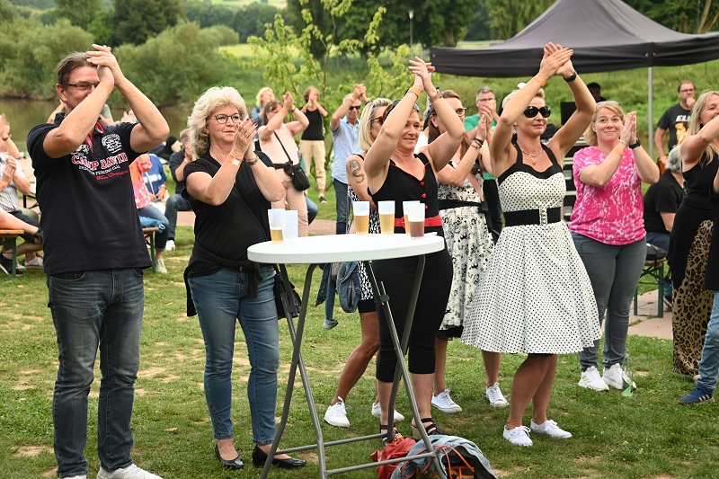 Höxter (TKu). Rockabilly an der Weser – ein Abend zum Genießen: Am vergangenen Samstagabend verwandelte sich die Weserscholle im Huxarium Gartenpark Höxter in eine pulsierende Rockabilly-Bühne. Die Band „The Silverettes“ heizte den rund 150 Besucherinnen und Besuchern ordentlich ein und bot eine mitreißende Show, die das Lebensgefühl der 50er Jahre perfekt einfing. Mittendrin statt nur dabei im Geschehen waren die Höxteranerinnen Michaela Rook, Svenja Walter, Melanie Lappe und Yvonne Schaper, die im stilechten Rockabilly-Outfit den Abend genossen. Die vier Damen sind echte Fans dieser Musik und lassen nach eigener Aussage zufolge keine solcher Veranstaltungen in der näheren Umgebung aus, wie sie erklären.