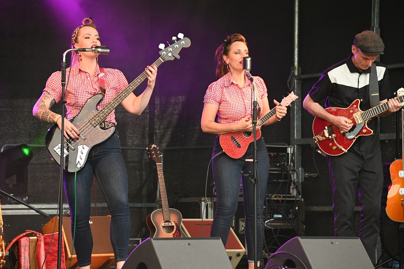 Die Silverettes, bestehend aus Ira, Jane und Honey, stammen aus Ostwestfalen und dem Ruhrgebiet und sie glänzten mit einer Mischung aus eigenen Songs und einzigartigen Interpretationen bekannter Hits, darunter „Dynamite“ von BTS und Klassiker wie „Sweet Dreams“. Als Vorband waren sie bereits für die Musiker und Bands „Dick Brave & The Backbeats“ oder „The BossHoss“ im Einsatz. Mit knallroten Lippen, Polka Dots und jeder Menge Charme brachten sie die Weserscholle zum Beben und versetzten das Publikum in einen regelrechten Rockabilly-Rausch auf der malerischen Weserscholle. „Was für ein genialer Ausblick auf den Weserfluss“, hieß es von den Silverettes auf der Bühne, die von Höxter und der Landschaft drumherum sehr angetan waren. Dieser Rock’n’Roll-Abend voller nostalgischer Klänge wird den Besucherinnen und Besuchern sicherlich noch lange in Erinnerung bleiben wird.