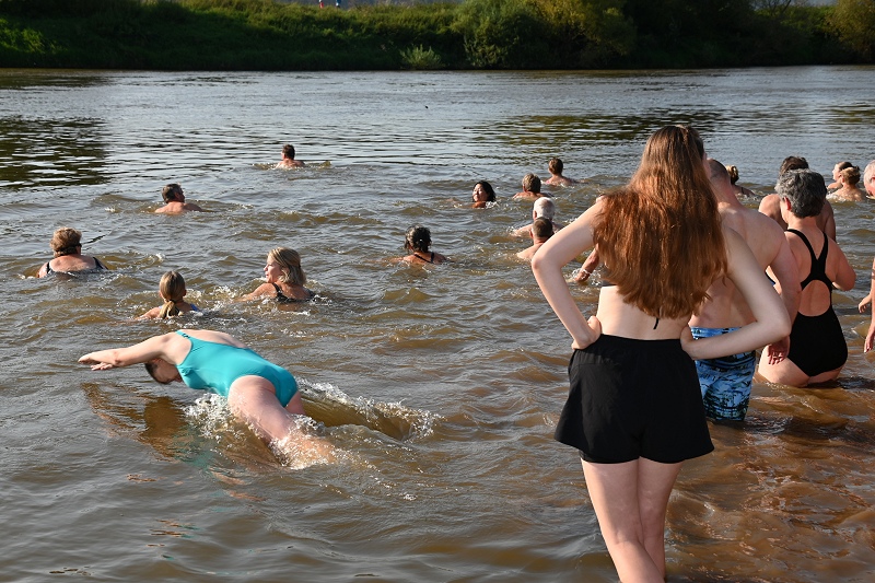Lüchtringen (TKu). Weserschwimmen und Hafenfest in den Sonnenuntergang: Unter dem Applaus zahlreicher Zuschauerinnen und Zuschauer tauchten am Samstag in Lüchtringen mutige Schwimmerinnen und Schwimmer in das kühle Nass der Weser ein. Zum 24. Mal fand das traditionelle Weserschwimmen statt, organisiert vom Fischereiverein Lüchtringen e.V.