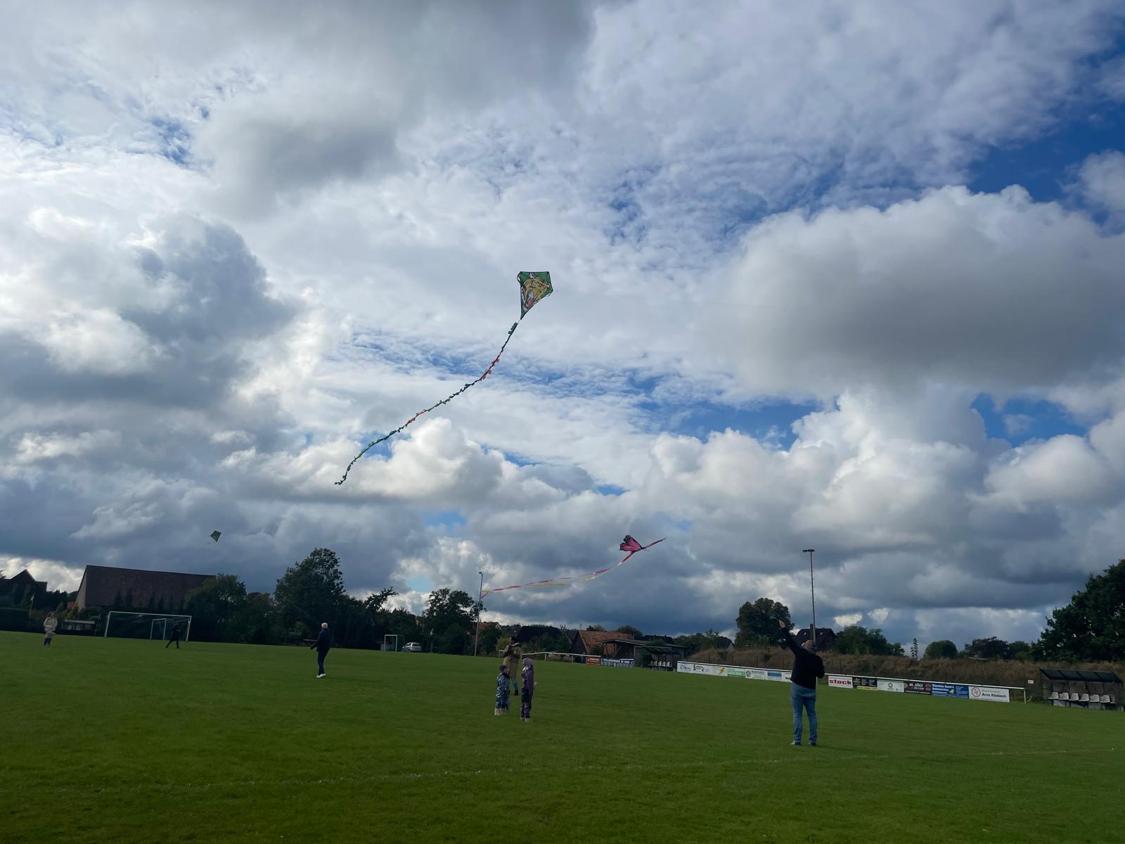 Aber auch die Kinder, die keinen Preis gewonnen haben, hatten einen schönen und sehr windigen Tag: „Ich habe lange keinen Drachen mehr steigen lassen, aber es macht immer wieder total Spaß“, so eines der teilnehmenden Kinder. Neben den Drachen war die aufgebaute Hüpfburg ein absolutes Highlight, auf dem viele Kinder spielten. Zudem konnte sich ebenfalls mit Fußball oder einer aufgeblasenen Bowlingbahn seine Zeit vertrieben werden. Wenn man keine Lust hatte, sich zu bewegen, sorgte der Verein auch für Verpflegung. Erfolgreich beendete der Verein nachmittags die Veranstaltung und freut sich auf nächstes Jahr, wenn es wieder heißt: „In die Lüfte, Fertig, Los!“