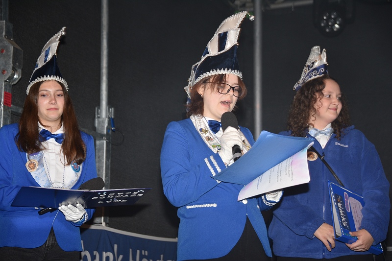 Eingebettet in ein würdiges Rahmenprogramm der CVWB-Tanzgarden und Karnevalsredner, mit Musik durch DJ Alex B. haben sich beide Prinzenpaare während der Proklamation mit ihren carnevalistischen Ansprachen ausgiebig dem Publikum vorgestellt. Anschließend wurden sie noch „märchenhaft“ gefeiert – getreu dem aktuellen Sessionsmotto des CVWB: „Grimms Bücher fest in Narrenhand, reist mit uns ins Märchenland“. Voller Marktplatz: Etwa 500 Närrinnen und Narren kamen auf dem Marktplatz in Beverungen zusammen, um gemeinsam die neuen Prinzenpaare zu feiern. Sitzungspräsidentin Emily Buxton führte mit viel Charme und Witz durch das Programm. Nonstop begeistert haben das Tanzmariechen und die großen und kleinen Tanzgarden des CVWB.