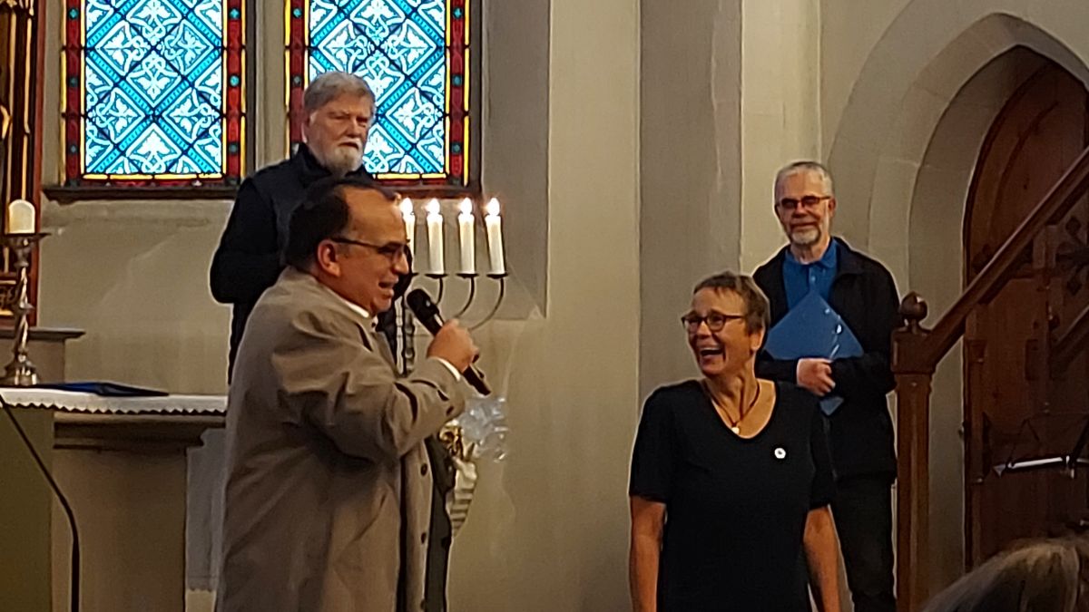 Pfarrer Bernd Kruchmetzki eröffnete den Festgottesdienst mit einem Zitat aus dem Film „Die Konferenz der Tiere“. Dabei hob er hervor, dass Singen eine verbindende Kraft habe, die über Grenzen hinweggeht und Körper und Seele guttue.