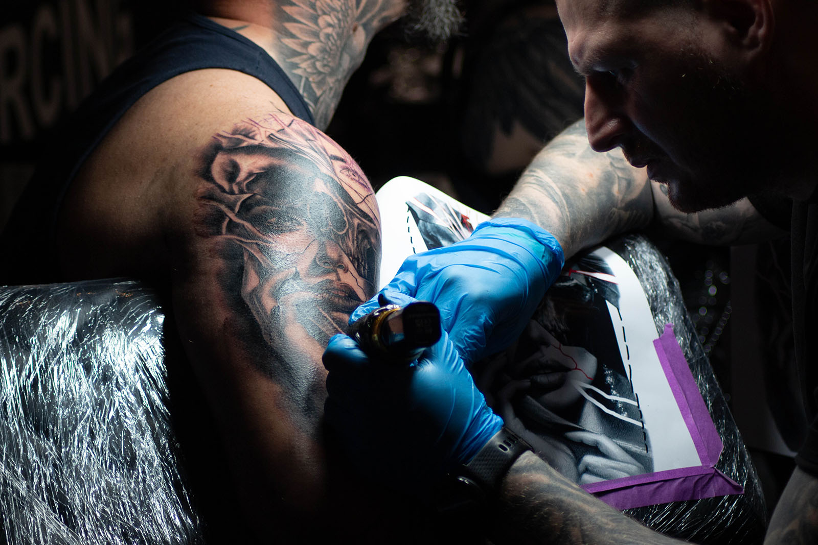 Im Mittelpunkt der Convention stand die Tattoo-Kunst. Verschiedene Studios aus ganz Deutschland präsentierten ihre Arbeiten – von floralen Motiven über Porträts und Tierdarstellungen bis hin zu abstrakten Designs. Wer wollte, konnte sich direkt vor Ort tätowieren lassen. Besonders Mutige wagten sich an das sogenannte „Glory Hole“: Für 50 Euro gab es ein Überraschungstattoo. Die möglichen Motive waren zwar ausgehängt, welches Motiv letztlich gestochen wurde, entschied jedoch der jeweilige Tattoo-Artist.