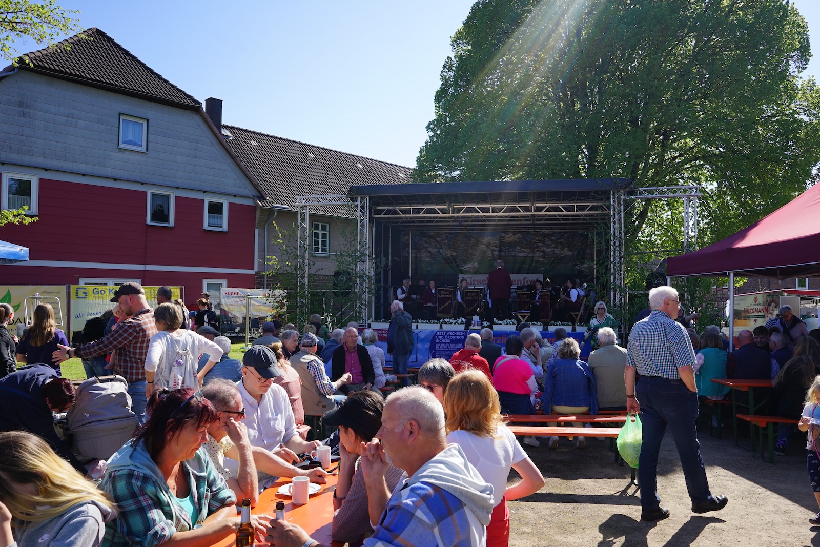 Das musikalische Programm gestalteten das Stahler Blasorchester und Sänger Ron Phillips. Außerdem wurde am Nachmittag auch hier die frisch gekrönte Kirschblütenkönigin Anne-Kathrin I. begrüßt.