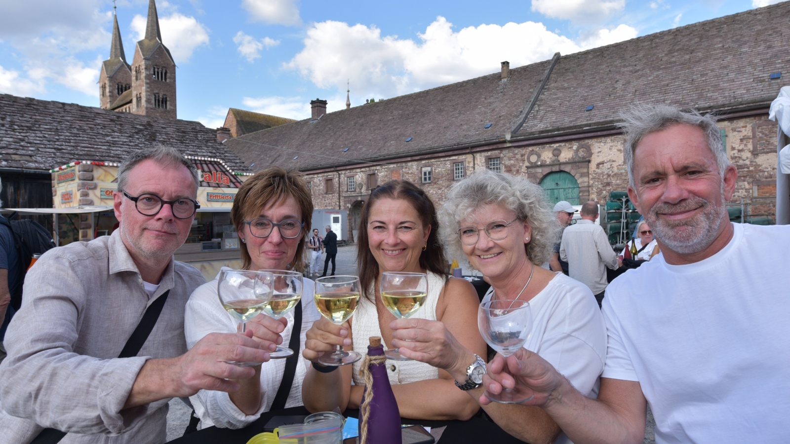 Höxter (TKu). So viele Gäste wie noch nie zog das Benefiz-Weinfest am vergangenen Samstag in den Corveyer Domänenhof: Geschätzt mehr als 1.000 Besucherinnen und Besucher genossen bei strahlendem Sonnenschein, gutem Wein, kulinarischen Spezialitäten und stimmungsvoller Musik das Weinfest. 1.003 Weinflaschen gingen über die Theke – im Vorjahr waren es 630. Bereits vor 16 Uhr strömten die ersten Gäste auf das Gelände vor dem Corveyer Weinhaus. Zum siebten Mal luden die Serviceclubs Ladies’ Circle 64 Höxter-Holzminden und Round Table 150 Höxter-Holzminden zu dem Fest ein, das bereits zum vierten Mal in der historischen Kulisse des Domänenhofs stattfand. „Bei traumhaftem Wetter und in malerischer Umgebung mit Blick auf das imposante Westwerk von Corvey bot sich eine ideale Atmosphäre“, meinte eine Besucherin und ergänzte: „Die Atmosphäre des Domänenhofs passt perfekt zum Weinfest.“