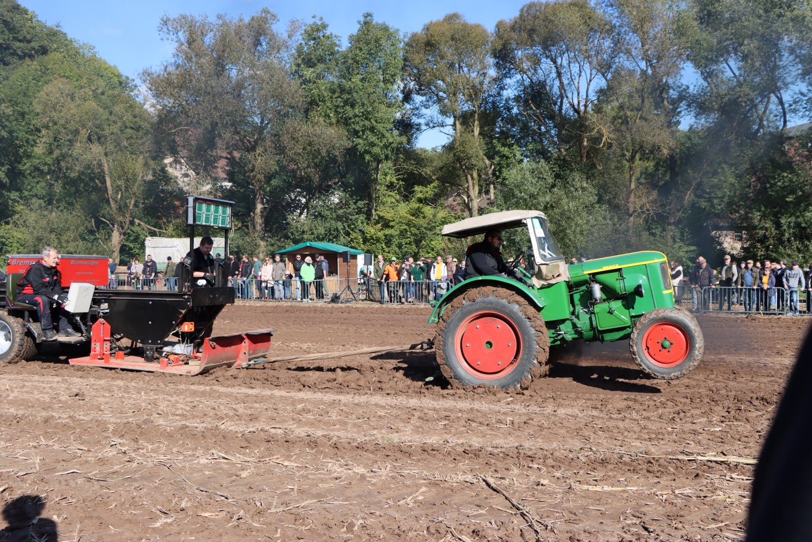 Ein besonderes Highlight bildet die Dreschvorführung mit einer historischen Lanz-Maschine. Dafür hatte die Landjugend bereits vor Wochen mit einem alten Mähbinder Weizen geerntet. Auf dem Acker der Familie Wiedenbruch findet das bekannte Traktorpulling statt. Hierbei ziehen Traktoren verschiedener Klassen einen Bremswagen über die Strecke. Sieger wird, wer die weiteste Distanz erreicht. Nicht nur Profis, auch Hobbyfahrer mit gültigem Führerschein sind eingeladen, teilzunehmen.