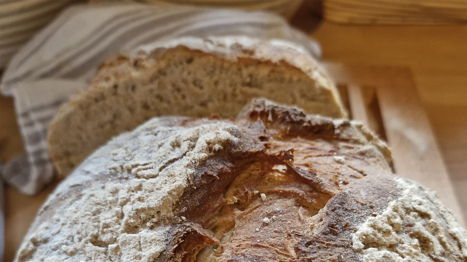 Wenn im alten Backraum der überraschend große Museumsbackofen mit Bedacht angefeuert und mit Buchenholz aufgeheizt ist, werden in dem direkt innenbefeuerten Steinbackofen kräftig geknetete Brotteige kross, mit besonderem Geschmack und unverkennbar feinem Aroma gebacken. Als ehrliches manuelles Handwerk zeigt sich hier die Kunst des alten dörflichen Brotbackens – mit Zeit, Geduld, Sorgfalt und dem richtigen Mehl. Das verwendete Qualitätsmehl aus regional angebauten Getreidesorten stammt aus der hofeigenen und mit Wasserkraft betriebenen Mühle Bartels im benachbarten Sollingranddorf Mackensen.