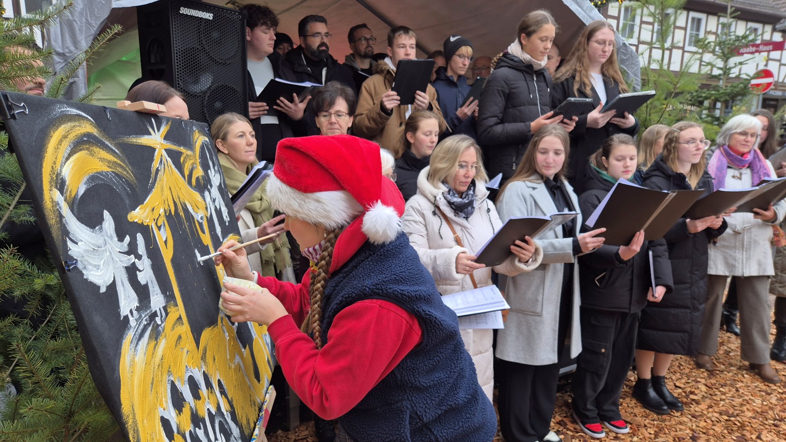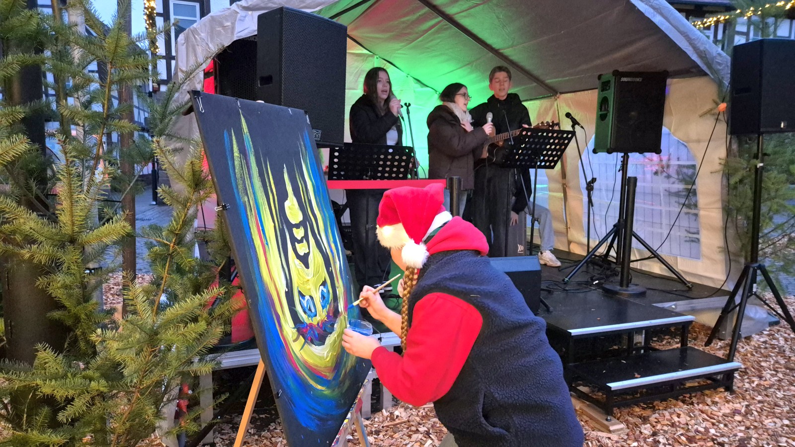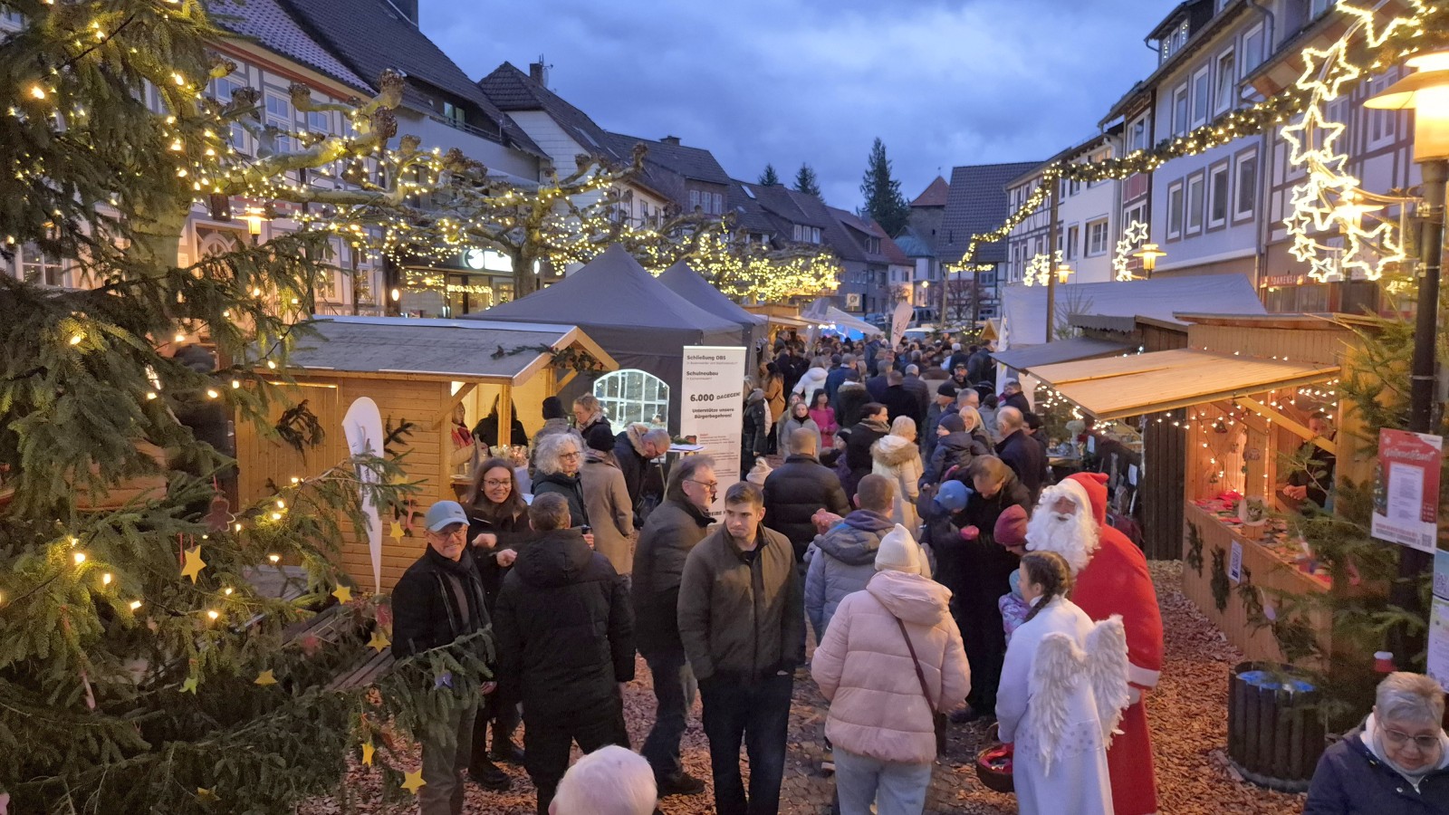 Auf der Bühne gab es ein vielseitiges Programm aus Chören, Solisten, Künstlern und sogar einer Musikband und auch abseits sorgten etwa die Weihnachtsbäckerei, ein Angebot der Freikirche oder auch ein tolles Mitmachtheater für Abwechslung unter den jüngeren Besuchern. Zwei Kinovorstellungen reihten sich in die Programmhöhepunkte ein, während auch die Moonlight-Kirche sowie zwei Angebote, das alte Stadtoldendorf per Stadtführung oder Bildershow zu erleben, wieder gut ankamen. Natürlich durften auch der Weihnachtsmann und sein Engelchen nicht fehlen, die beide auch für das ein oder andere Foto zur Verfügung standen.