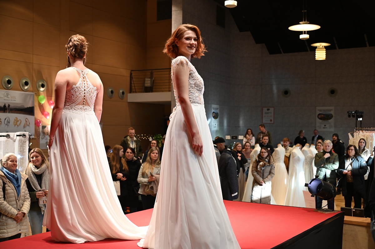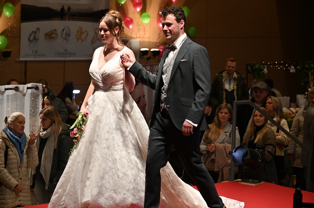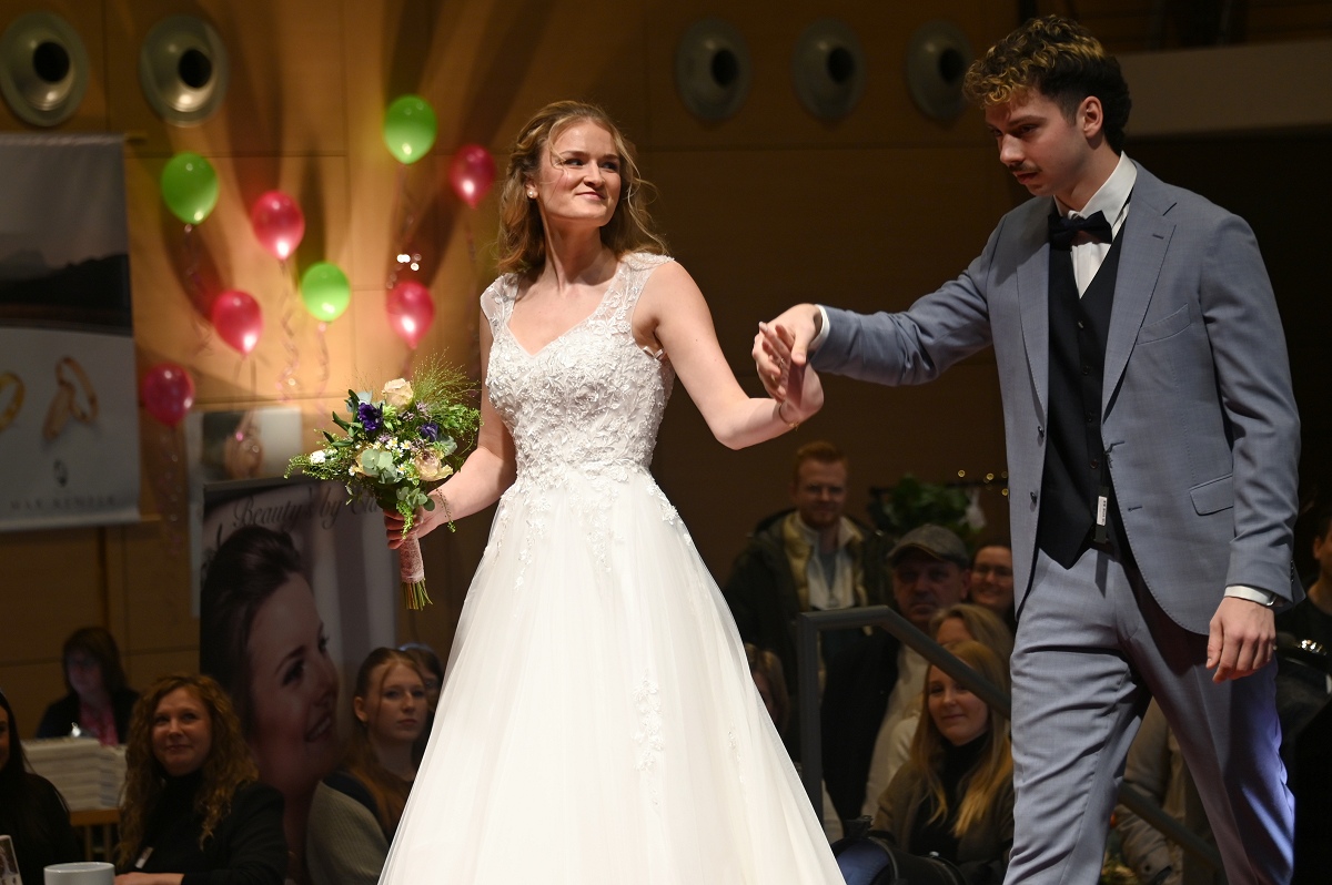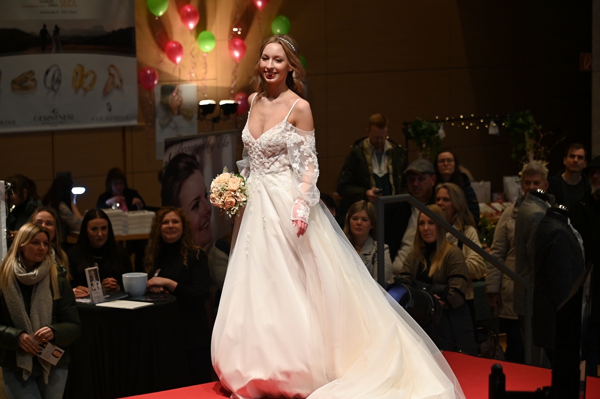 Höxter (TKu). Von der ersten Idee bis zum letzten Detail: Wer sich mitten in den Hochzeitsvorbereitungen befindet und Inspirationen suchte, insbesondere was die neuesten Trends betrifft, der war am Sonntag in der Residenz-Stadthalle in Höxter genau richtig. Bei der 30. Höxteraner Hochzeitsmesse, ausgerichtet von der Boutique Tinas Moden, drehte sich wieder einmal alles um den wohl schönsten Tag im Leben eines Paares. Die Messe bot eine gelungene Mischung aus Information, Inspiration und persönlicher Beratung. Drei Modenschauen, bei denen die aktuellen Hochzeitskollektionen 2026 vorgestellt wurden, waren die Höhepunkte der Messe, die etwa 500 Besucherinnen und Besucher angezogen hat. Zeitlose und wandelbare Designs seien aktuell sehr gefragt. Bettina Hörnlein von Tinas Moden erläuterte, dass aktuell hauptsächlich abnehmbare Röcke und Schleppen im Trend lägen, um den Übergang von Trauung zu Feier flexibel zu gestalten. Ergänzt würden diese durch integrierte Taschen, Beinschlitze in weich fließenden Chiffonröcken, schlichte Satinröcke oder weit geschnittene Kleider für den „Prinzessinnenmoment“. Ein hoher Tragekomfort und der Wohlfühlfaktor spielten bei der Beratung stets eine zentrale Rolle. Auch bei der Mode für den Bräutigam zeigten sich neue Akzente. Moderne Farbtöne setzten frische Impulse, während klassische Modelle, wie in Blau, weiterhin gefragt blieben.