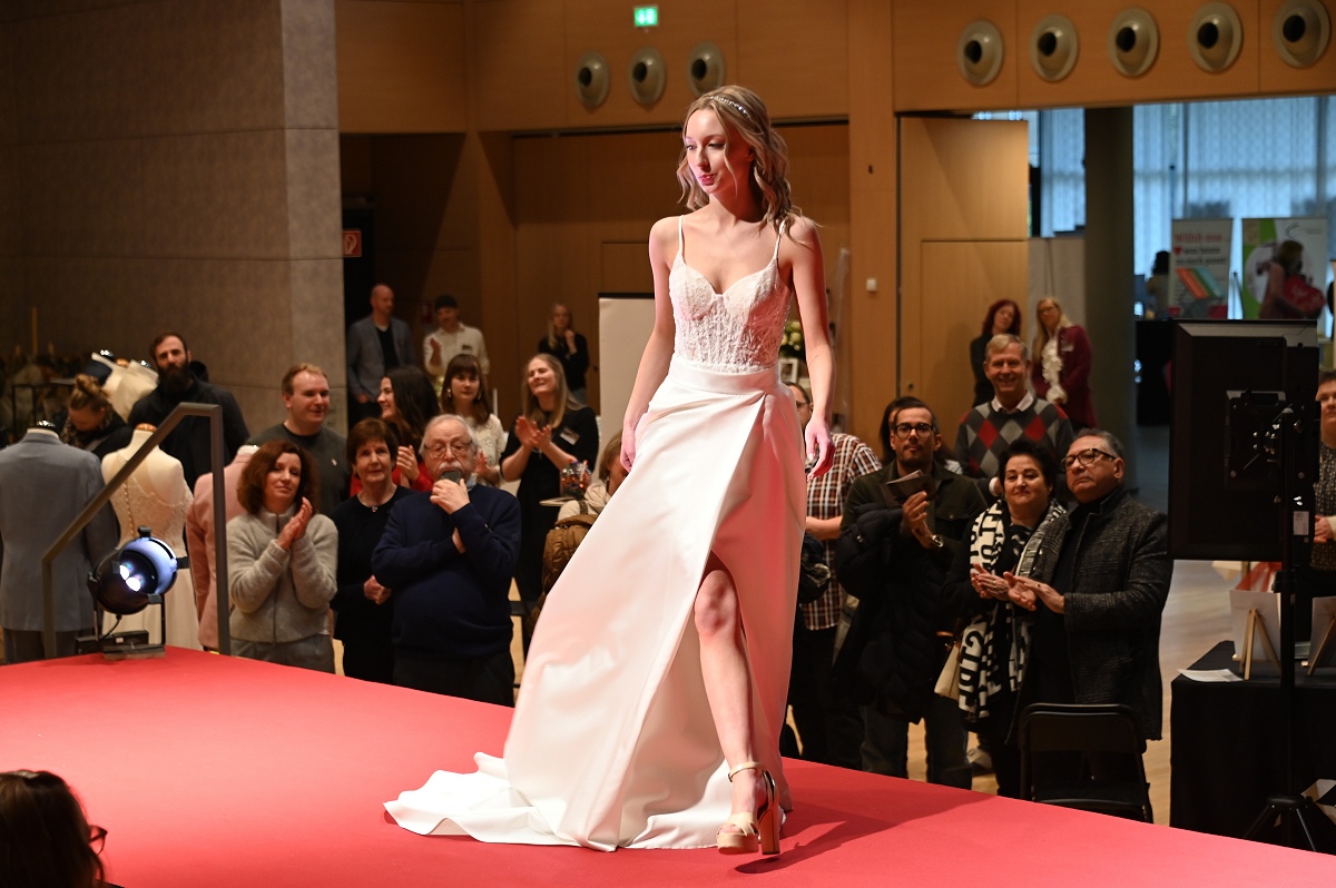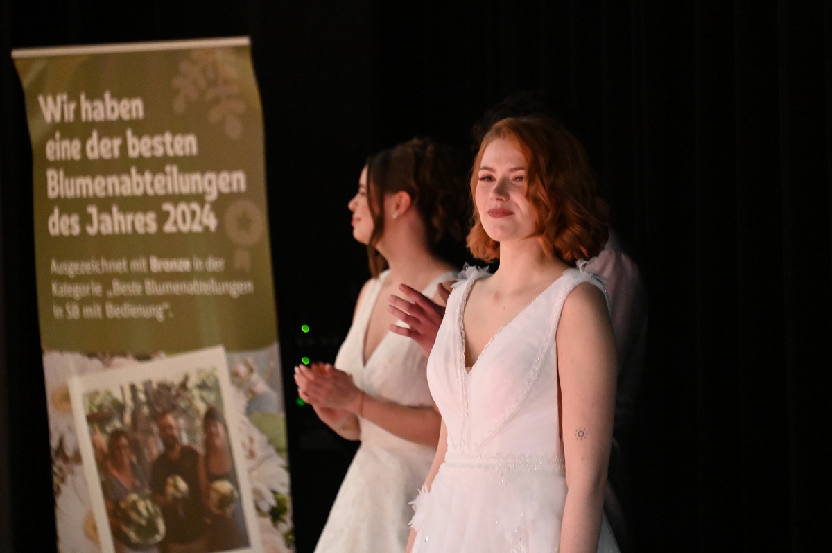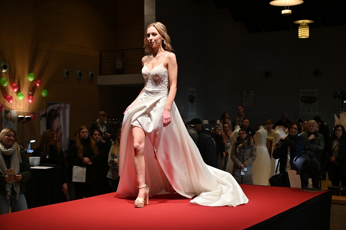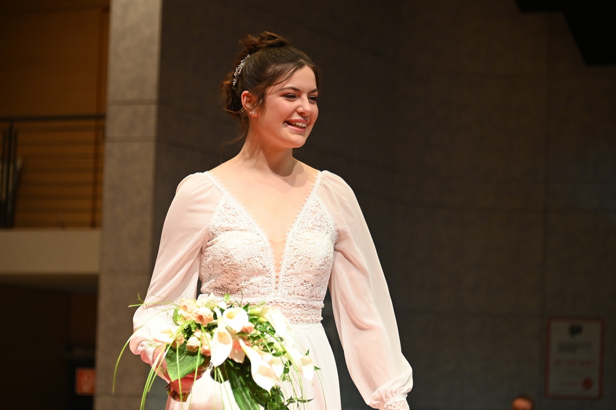 Höxter (TKu). Von der ersten Idee bis zum letzten Detail: Wer sich mitten in den Hochzeitsvorbereitungen befindet und Inspirationen suchte, insbesondere was die neuesten Trends betrifft, der war am Sonntag in der Residenz-Stadthalle in Höxter genau richtig. Bei der 30. Höxteraner Hochzeitsmesse, ausgerichtet von der Boutique Tinas Moden, drehte sich wieder einmal alles um den wohl schönsten Tag im Leben eines Paares. Die Messe bot eine gelungene Mischung aus Information, Inspiration und persönlicher Beratung. Drei Modenschauen, bei denen die aktuellen Hochzeitskollektionen 2026 vorgestellt wurden, waren die Höhepunkte der Messe, die etwa 500 Besucherinnen und Besucher angezogen hat. Zeitlose und wandelbare Designs seien aktuell sehr gefragt. Bettina Hörnlein von Tinas Moden erläuterte, dass aktuell hauptsächlich abnehmbare Röcke und Schleppen im Trend lägen, um den Übergang von Trauung zu Feier flexibel zu gestalten. Ergänzt würden diese durch integrierte Taschen, Beinschlitze in weich fließenden Chiffonröcken, schlichte Satinröcke oder weit geschnittene Kleider für den „Prinzessinnenmoment“. Ein hoher Tragekomfort und der Wohlfühlfaktor spielten bei der Beratung stets eine zentrale Rolle. Auch bei der Mode für den Bräutigam zeigten sich neue Akzente. Moderne Farbtöne setzten frische Impulse, während klassische Modelle, wie in Blau, weiterhin gefragt blieben.