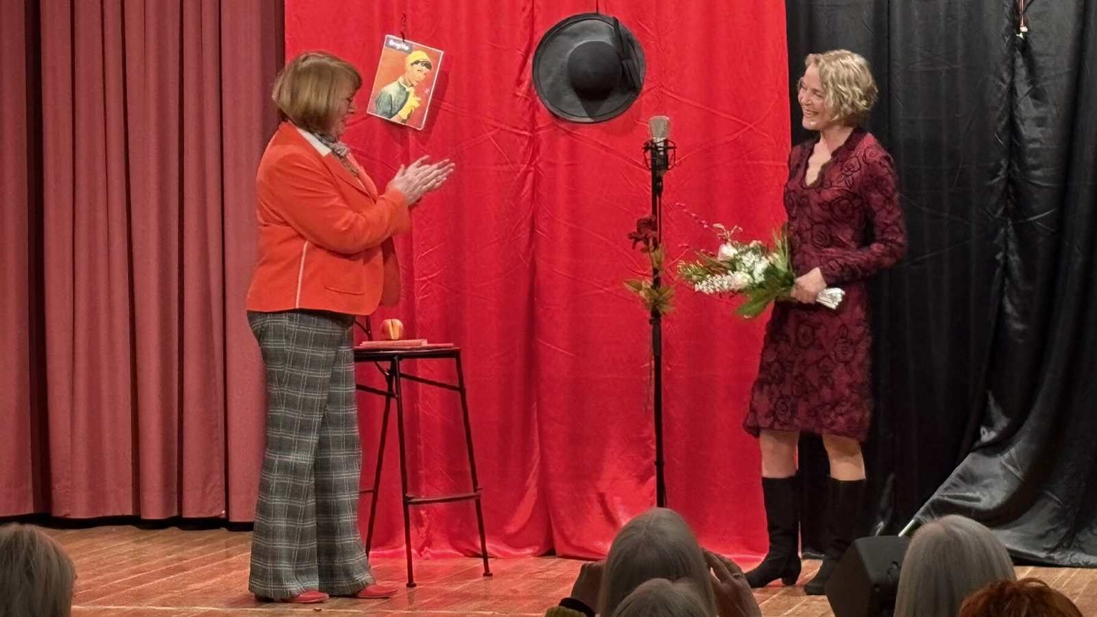Mit viel Humor und einer Stimme, die zwischen sanfter Ironie und beißender Satire wechselte, führte Seifert durch die Jahrzehnte. Sie schlüpfte in der Revue immer wieder in neue Rollen, der Zeit entsprechend, mit nur angedeuteten Kostümierungen. So waren in den wilden Zwanzigern Frauen plötzlich sichtbar – tanzend, rauchend, vermeintlich frei. Doch diese Freiheit war nicht von Dauer: Es gab neue Abhängigkeiten und die Frauen rutschten wieder in die Anpassung, von der Femme Fatale zum Mutterkreuz.