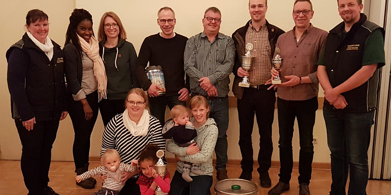 Beide Mannschaften hatten neun Treffer in der Acht platziert, so kam die gezogene Reservezahl Sieben zum Einsatz. Hier hatten die Damen um einen Zähler mehr die Nase vorn und sicherten sich den 2. Platz. Mit zehn Treffern in der Glückszahl des Tages holte sich die Freiwillige Feuerwehr Heinade den Pokal für den 1. Platz. Besonderer Ehrgeiz kam beim Preisschießen auf. Hier zählte die beste Zehn in der Teilerwertung. Platz drei und Gewinner einer Mettwurst ist Marco Hesse mit einem Teiler von 64. Den 2. Platz und das 10 l Fässchen Bier sicherte sich Steffen Schoppe. Mit einem fantastischen Teiler von 22 holte sich Hinrich Bock das 20 l Fass Allersheimer. Allen Gewinnern wurde standesgemäß mit einem dreifachen gut Schuss gratuliert.