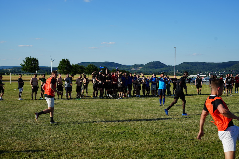 Beim letzten Spiel des Tages um den A-Pokal kochten die Emotionen hoch. Im Finalen standen sich FC Cankan und Alarm für Krombacher 11 gegenüber. Beide Mannschaften durchliefen die Gruppenphase ohne eine Niederlage. Diese Qualität zeigten die Teams auch im Finale. Die Zuschauer und anderen Teams jubelten und stürmten regelmäßig das Spielfeld, zum Leid der spielenden Mannschaft und der Schiedsrichter. Die Krombacher 11 führte mit 3:0 Toren, als das Spiel kurz vor Schluss abgebrochen werden musste. Immer wieder stürmten andere Spieler und Zuschauer das Spielfeld und neben dem Jubel fielen leider auch Beleidigungen gegen den FC Cankan. Die Organisatoren, Schiedsrichter und die Security lösten angespannte Situation auf. Dementsprechend verzögerte sich auch die Siegerehrung. Jan Grobe und Julian Rawisch nutzten die Aufmerksamkeit der Mannschaften und Besucher, um an alle Beteiligten zu appellieren und distanzierten sich von rassistischen Äußerungen und unsportlichem Verhalten. „Diese Personen oder Mannschaften, die so etwas sagen, werden beim nächsten Turnier ausgeschlossen“, so Rawisch bestimmt.