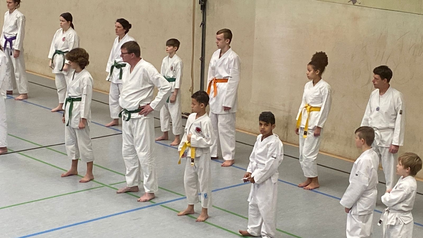 Kirchbrak (red). Unter der Leitung von Tobias Prüfert (5.Dan), Stützpunkttrainer Nord aus Magdeburg, hat am 21. Januar der 3. Neujahrslehrgang in Kirchbrak stattgefunden. Nach zweijähriger Zwangspause bedingt durch Corona fanden sich 40 Karatekas voller Motivation zusammen. Die Teilnehmer reisten aus verschiedensten norddeutschen Dojos an (Kaltenkirchen, Bremen, Göttingen, Holzminden, Eschershausen und Grave).