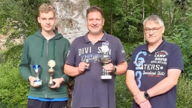 Stadtoldendorf (red). Am 01. Juli gab es gleich drei Anlässe, um im Vereinsheim zu feiern. 1. Vorsitzender Michael Wuttke und Bürgermeister Helmut Affelt konnten zu Beginn des Sommerfestes die Königsscheiben unserer Stadtmajestäten, Helmut Wuttke, Andrea Wuttke II und Leyla Sander aufhängen. Anschließend luden die Majestäten zum Imbiss ein. Bei gutem Wetter und guter Stimmung wurde ein schöner Nachmittag und Abend in geselliger Runde verbracht. Zwischendurch kam der dritte Akt, die Siegerehrung der Einweihungspokale. Bei der Jugend konnte mit einem Teiler von 20,6 Jendrik Burose sich über den ersten Platz freuen. Platz 2 ging an Dominik Planke, Teiler 27,2, gefolgt von Leyla Sander, Teiler 60,8. Bei den Erwachsenen konnte Daniel Wuttke, Teiler 47,0 den ersten Platz belegen. Gefolgt von Heinz Fischer, Teiler 63,2 und Celina Wuttke, Teiler 193,8.
