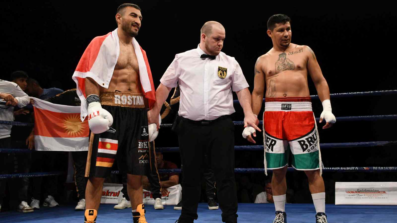 Richtig stimmungsvoll ging es bei dem Kampf vom Lokalmatador Rostam Ibrahim gegen Frank Rojas aus Venezuela zu. Von Beginn an war das Publikum da und verwandelte die Halle 39 in einen Hexenkessel. Rostam Ibrahim machte kurzen Prozess und beendete den Kampf in der ersten Runden schon nach 54 Sekunden mit einem harten Kopftreffer.