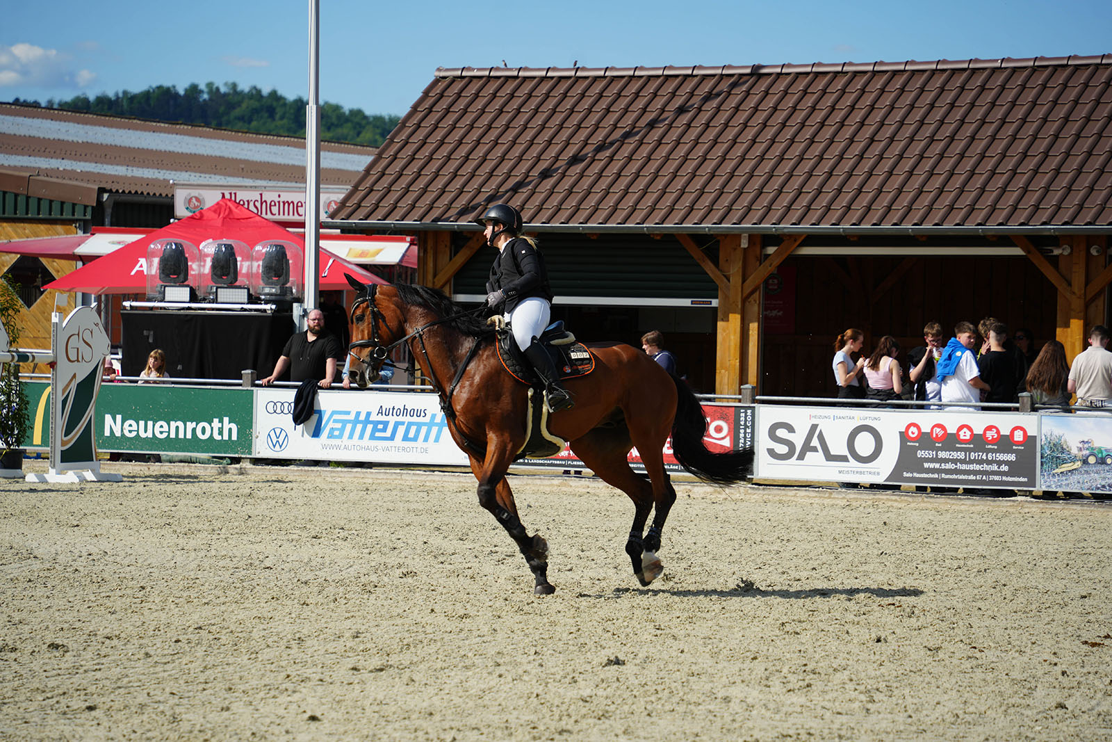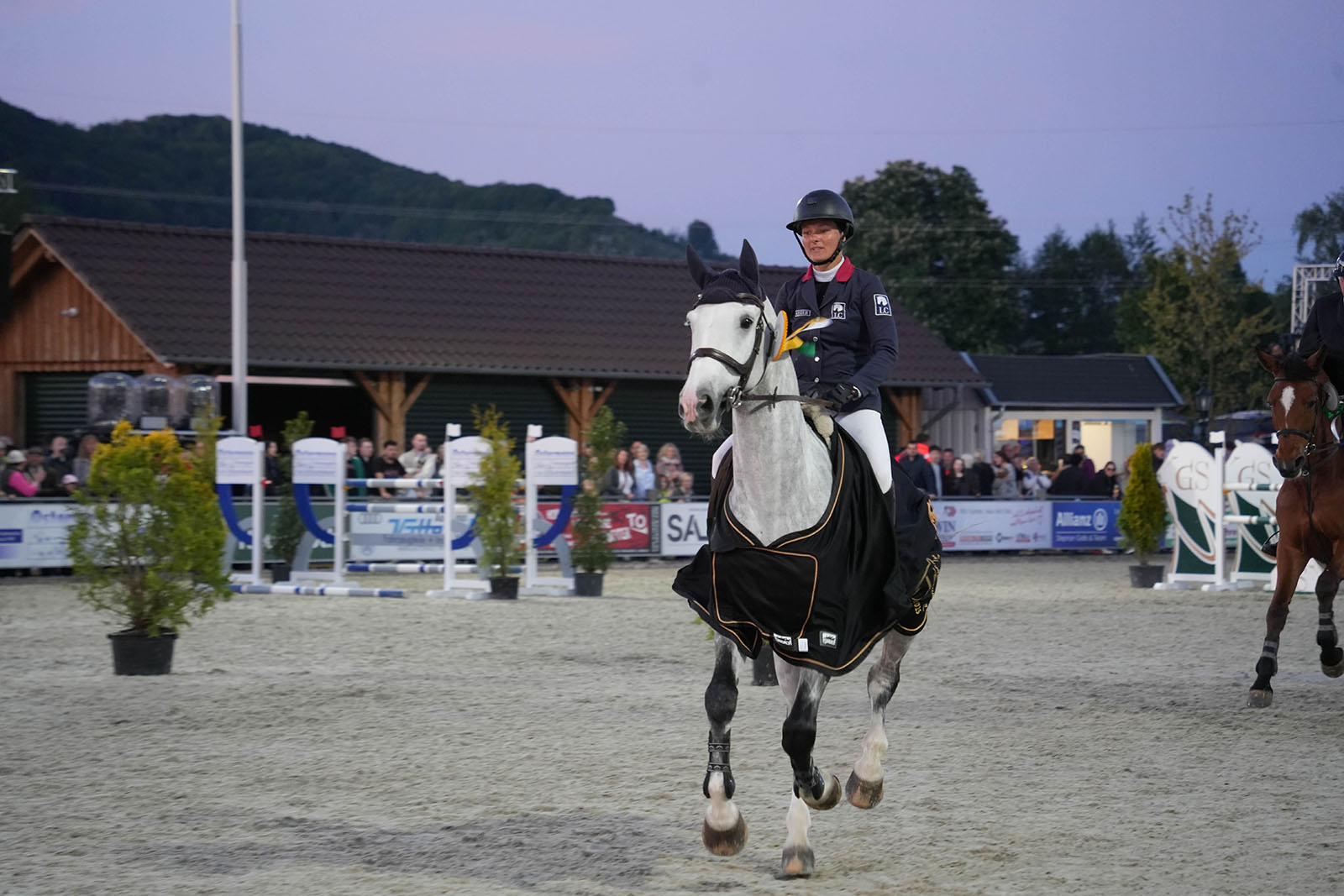 Bevern (zir). Was für ein Abend in Bevern: Nicht nur Sonne pur, sondern auch ein eng getaktetes Programm mit vielen Highlights bescherte dem Reitturnier zahlreiche Besucherinnen und Besucher. Am Abend gegen 18 Uhr startete die erste Springprüfung der Klasse "S*" (Schwer). Mit einer Hürdenhöhe von 140 Zentimetern konnten die Springer samt Pferd beweisen, was in ihnen steckt. Am Ende durfte sich Laura Strehmel mit ihrem Pferd "Moonraker 14" zur Siegerin erklären. Mit einer Zeit von 55,44 Sekunden setzte sie sich knapp von Platz zwei ab, den Niclas Baule mit "Caguyahime Moana" und einer Zeit von 55,91 Sekunden belegte. Strehmel erhielt für ihren Sieg einen Gutschein von "Caravan Park Müller" im Wert von 1.000 Euro.