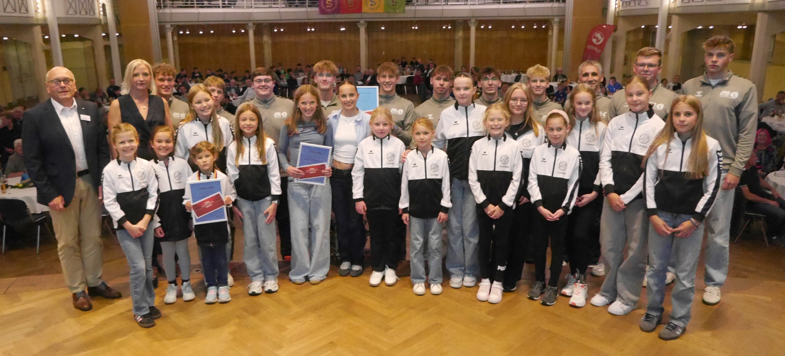 Um die Spannung noch ein wenig zu steigern, gab es nach den Grußworten und einer kurzen Präsentation der Nominierten eine Pause, in der sich alle mit leckerem Fingerfood stärken konnten. Der eloquente Moderator Wolfgang Jacob vom Kreissportbund übernahm dann wieder das Mikrofon, um mit launigen Sprüchen die Stimmung im Saal hochzuhalten. Insgesamt war festzustellen, dass die bunte Mischung an Sportarten wie Tennis, Kunstradfahren, Turnen, Leichtathletik, Laufen, Sommerbiathlon bis hin zum Sportkegeln auf große Begeisterung stieß. Für ein anerkennendes Raunen im Publikum sorgte der Hinweis, dass am 14./15. März 2026 in Boffzen die Deutschen Meisterschaften im Sport Stacking stattfinden werden.