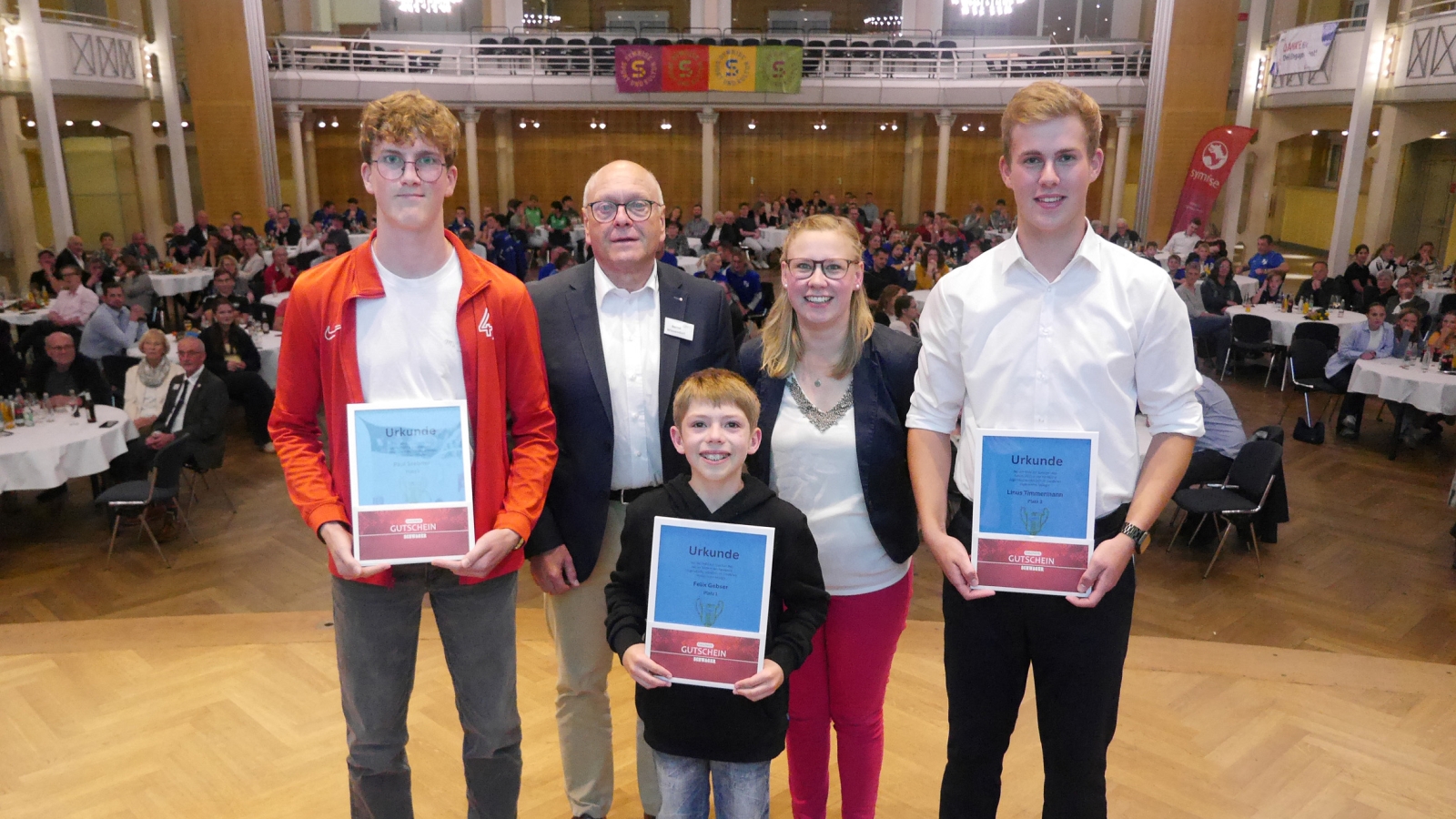 „Ich wusste zunächst nicht einmal, dass ich nominiert bin, umso mehr freue ich mich natürlich über den dritten Platz“, sagte Sommerbiathlet Linus Timmermann (TV Deutsche Eiche), der von Jessica Dieckmann, Landesjugendfachwartin für Rhönradturnen sowie Vertreterin von Symrise, seine Urkunde in Empfang nahm. Unter großem Jubel seiner Vereinskameraden betrat der zweitplatzierte Leichtathlet Paul Stebner (MTV 49 Holzminden) die Bühne. Von seinen Gefühlen überwältigt, nahm der zwölfjährige Rhönradturner Felix Gebser (MTV Altendorf) zur Kenntnis, dass er sich nun Sportler des Jahres nennen darf. Und er kann besonders stolz sein, denn er wurde als einziger Sportler von allen Stimmberechtigten auf den ersten Platz gesetzt.