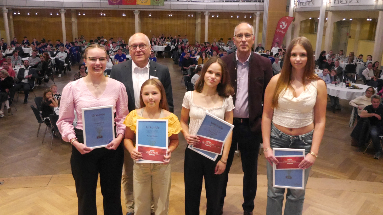 Doch dann war es höchste Zeit, das Geheimnis zu lüften. Oliver Fuchs von der Braunschweigischen Landessparkasse präsentierte mit Stabhochspringerin Klara Härke (MTV 49 Holzminden) und Trampolinturnerin Alexandra Melnichuk (TGJ Salzgitter) in der Kategorie weibliche Jugend gleich zwei punktgleiche Drittplatzierte. Sport-Stackerin Kaya Schilcher (MTV Boffzen) freute sich über ihren zweiten Platz. Mit Tränen der Freude reagierte die elfjährige Kunstradsportlerin Naraja Riemer (RV Grünenplan), als ihr Name aus dem Umschlag gezogen wurde für die Sportlerin des Jahres.