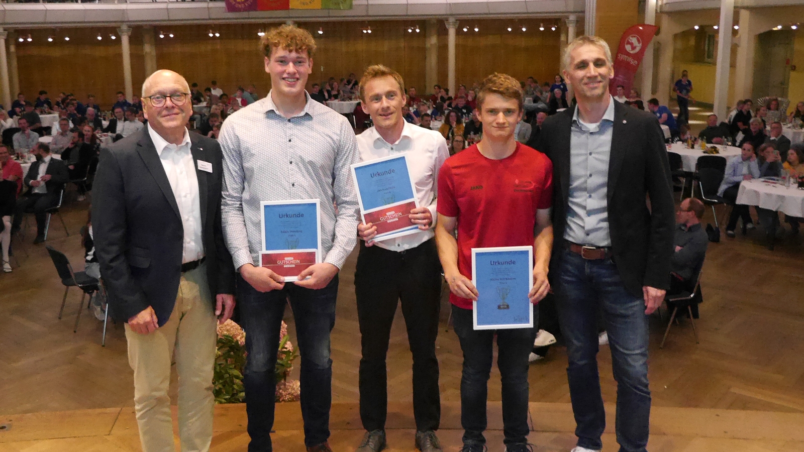 Zum zweiten Mal betrat dann Schwager-Geschäftsführer Matthias Kumlehn die Bühne. Nach der erfolgten Auszeichnung als Trainer der zweitplatzierten JSG Solling übernahm er nun die Ehrung der Sportler des Jahres. Turner Niclas Brinkmann (TC Jahn Hehlen) holte den dritten Platz, vor ihm landete Leichtathlet Robin Preußing (MTV 49 Holzminden). Große Freude herrschte bei Jan Kaschura (RunArtist Holzminden), der seinen Titel mit einem Kompliment an die Veranstalter verband: „Dies ist eine wunderbare Veranstaltung. Zu sehen, wie sich die jungen Nachwuchssportler freuen, sollte ein Ansporn für alle sein!“