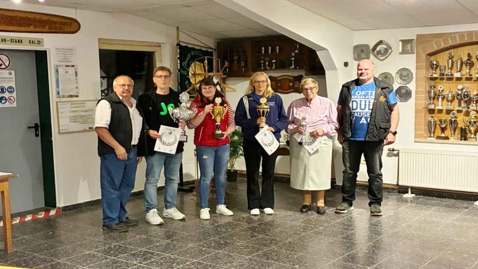 Zeitgleich wurde der Hans-Scheibert-Wanderpokal ausgeschossen. Hier setzte sich Verena Pramann-Maas von der Freiwilligen Feuerwehr Eschershausen mit einem Teiler von 110,36 durch.